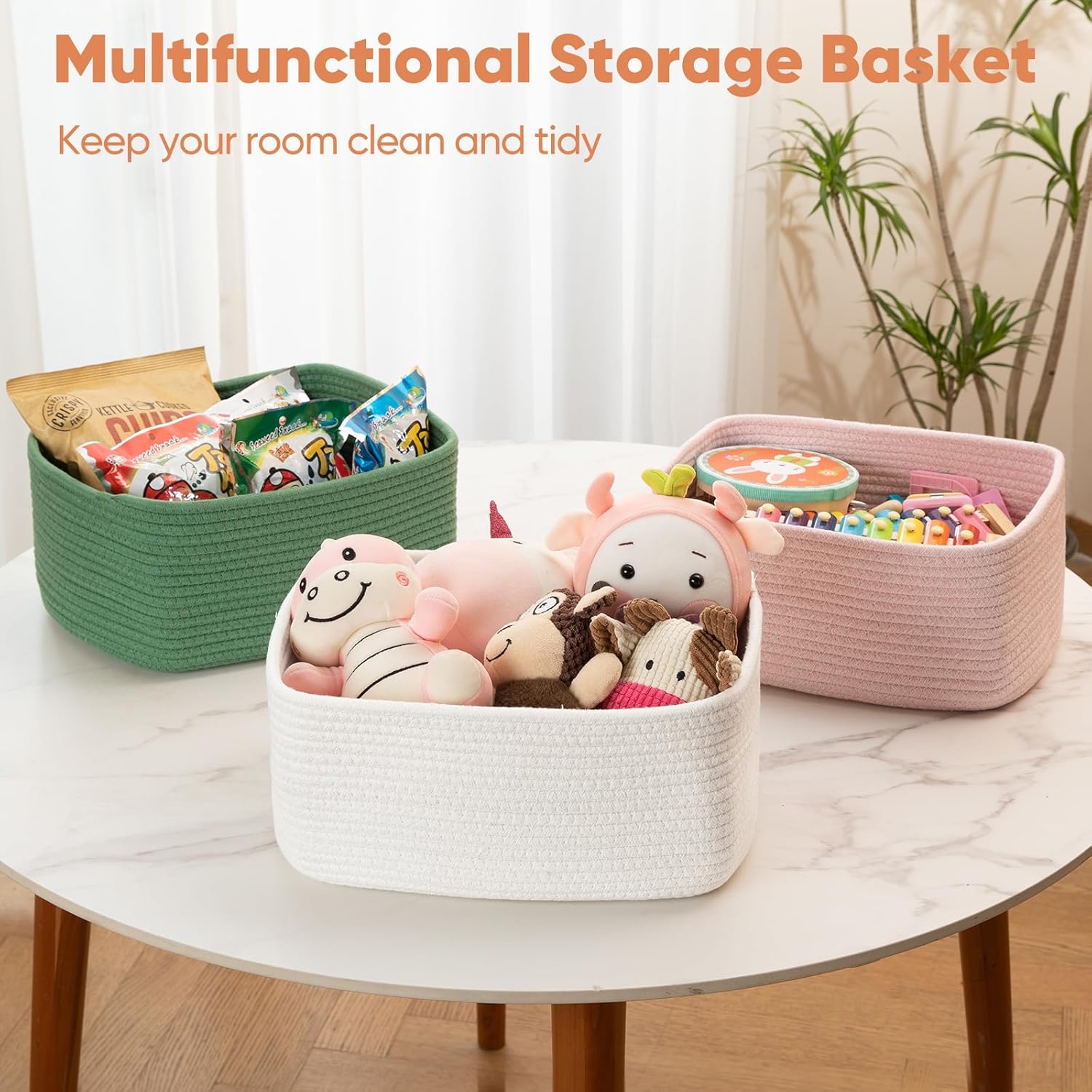 - Natural and Friendly: Our hand baskets for organizing are made of high-quality cotton, which is tough in texture but has a gentle touch. There are no hard edges, so it won't scratch your beloved desktop or floor. Each cotton rope has been carefully woven by artisans,which is durable and not easy to deform. Whether it's storing soft toys for babies or organizing daily necessities for pets, it is an ideal choice that is both safe and reassuring