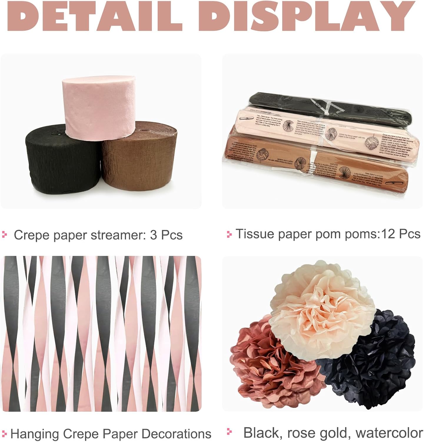 Black Pink Party Streamers Decorative Paper Pompoms for Sweet Cool Party Background, Birthday, Bachelor Party, Baby Shower, Ceiling Wall Hanging