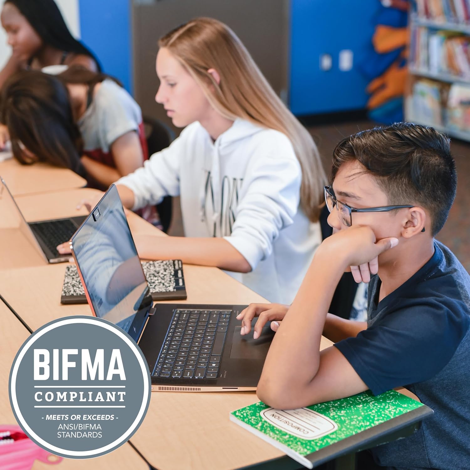 FDP Rectangle (30 x 72 inch) Classroom Table with Adjustable Chunky Toddler Legs (15-24 in); Preschool, Kinder and Daycare Furniture - Pasadena Oak Top/Navy Edge and Legs