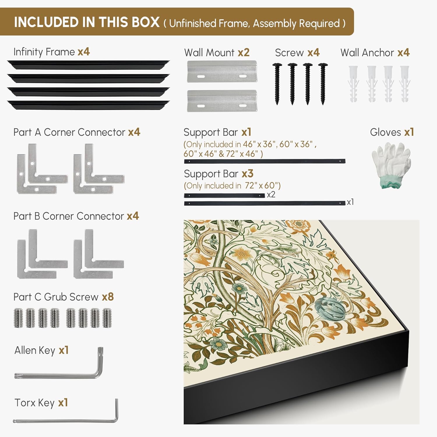 - Assembly Required: The artwork comes with the frame components unassembled. Don¡¯t worry ¡ª setup is straightforward and tool-friendly. For best results and accurate alignment, we recommend two people to ensure a smooth assembly and a stable, secure wall mount.