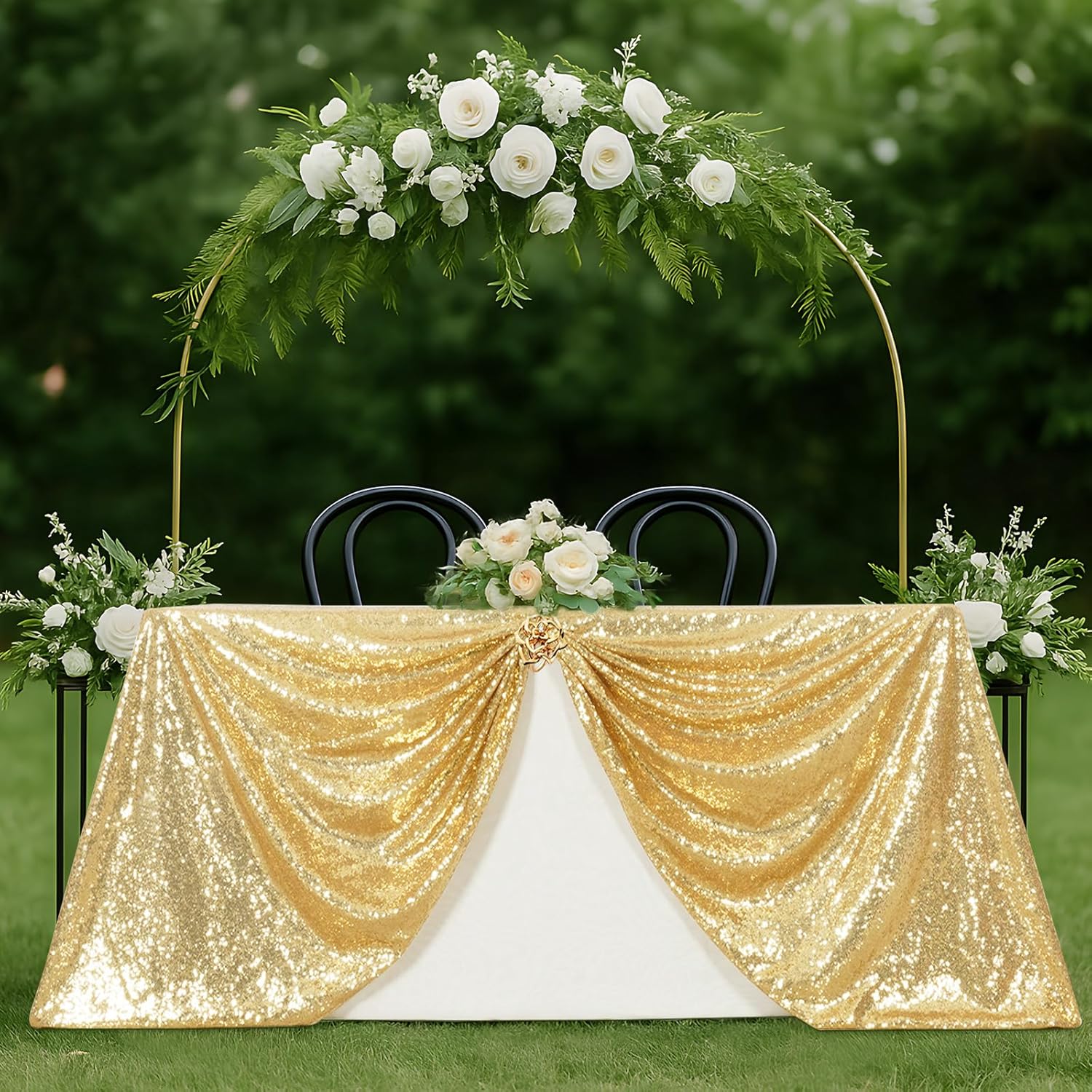SquarePie Sequin Tablecloth 50 x 72 Inch Light Gold Glitter Table Cloth for Wedding Party Decoration