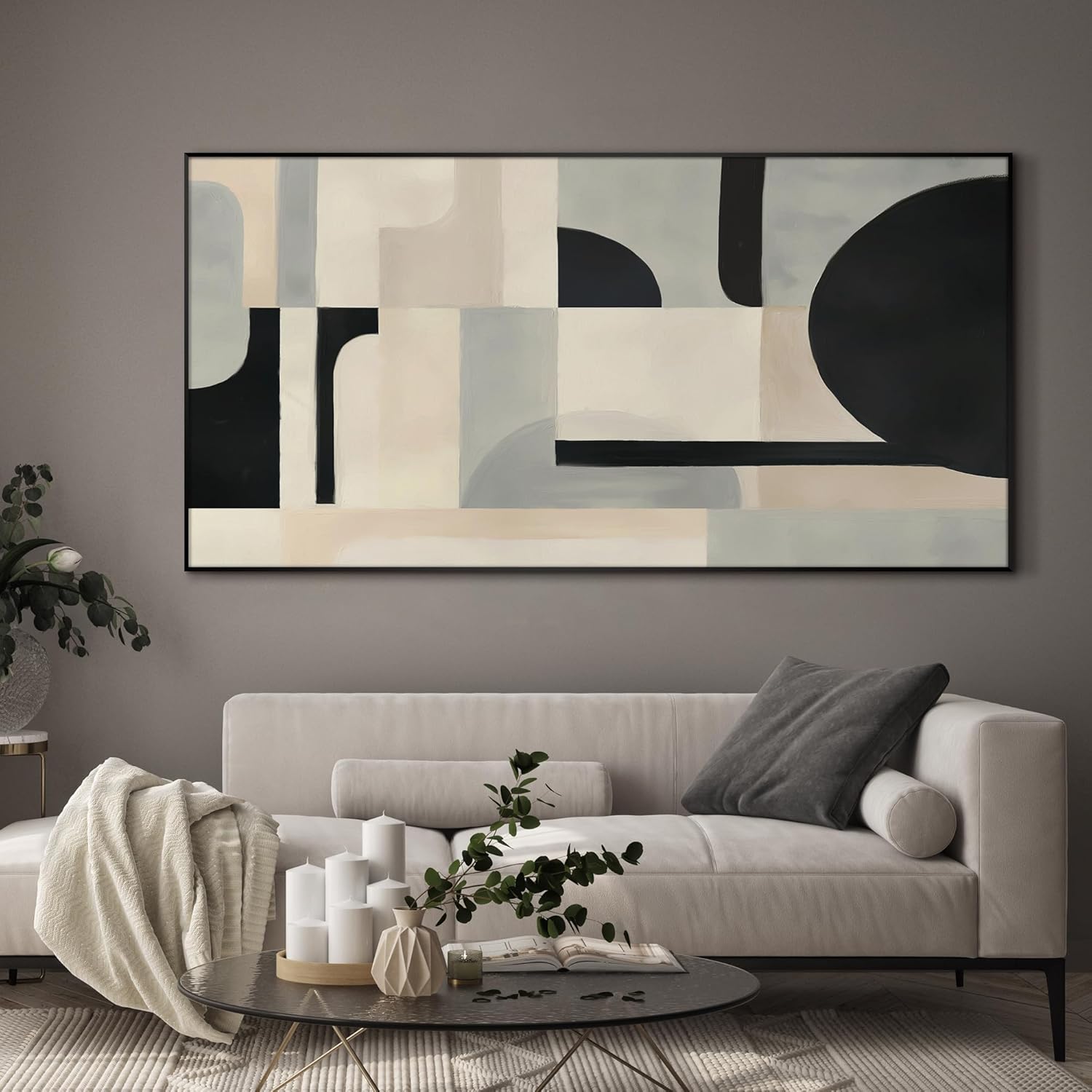 SIGNWIN 36"x72" Extra Large Framed Wall Art Modern Neutral Abstract Geometric in Black and Beige, Clean Minimalist Design for Home Living Room Bedroom Decor (Frame Assembly Required)