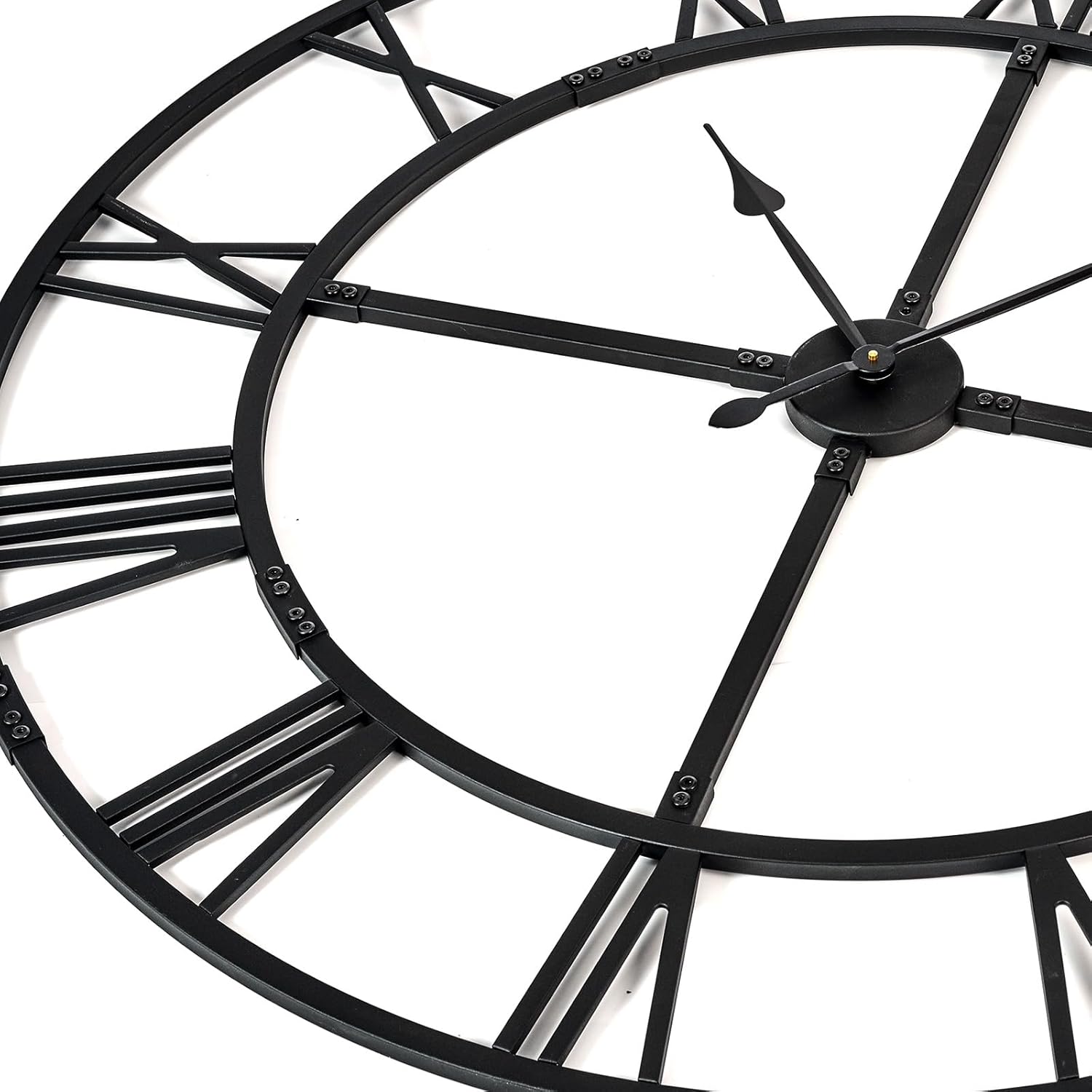 - Oversized Modern Design – This large wall clock features a minimalist open-face design with Roman numerals and black metal craftsmanship, making it a stunning decorative wall clock for living room, entryway, or office.