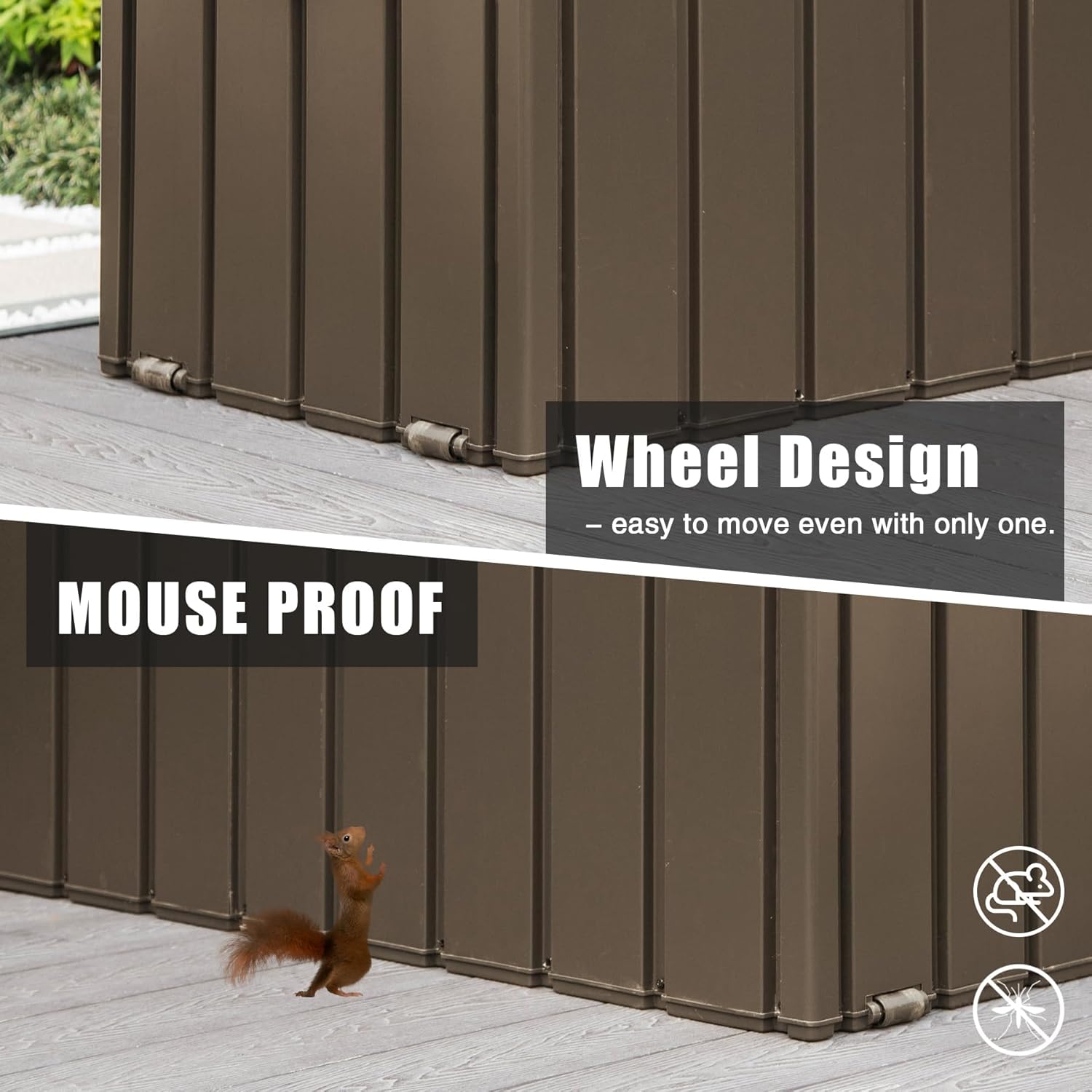 Domi Outdoor Storage Deck Box 120 Gallon, Waterproof Lockable Steel Outdoor Storage Container for Outside Cushions, Garden Tools and Pools Equipment, (Brown)