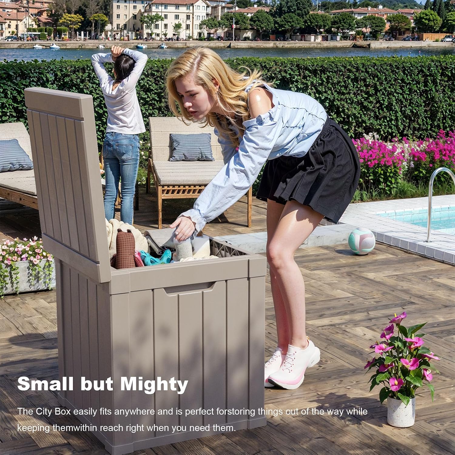 - TRANSFORM YOUR SPACE: Whether used indoors as a laundry storage solution or outdoors for patio items like cushions, garden tools, this patio storage box excels. Its multi-functional design makes it suitable as a side table, patio seat, storage bench, or footstool