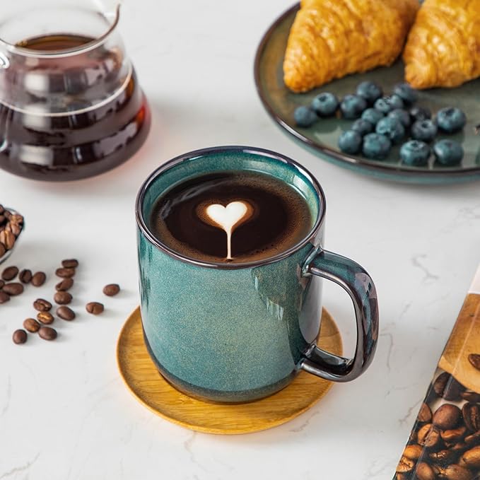 - 【Unique Kiln-Transformed Glaze】: Each coffee cup features one-of-a-kind natural color variations and patterns, created by unpredictable chemical reactions at high temperatures. The dense, vitrified glaze layer enhances scratch and corrosion resistance, ensuring long-lasting vibrancy without fading or dullness.