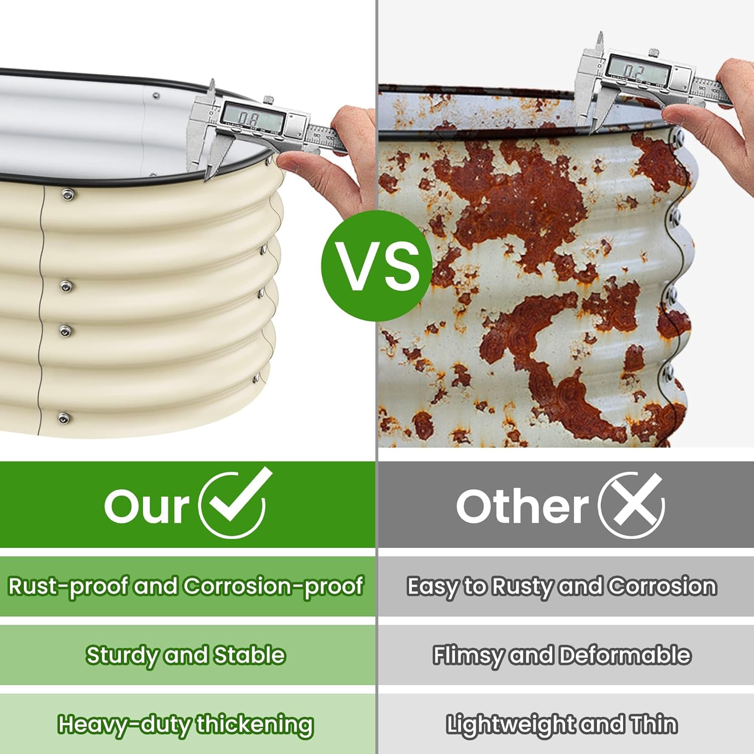 - Long-Lasting Quality:The garden beds are made of zinc aluminum-magnesium steel for durability. This advanced material is more resistant to corrosion and rust than traditional galvanized materials. Lasts 2-6 times longer than traditional galvanized raised beds, far longer than wood raised garden bed.