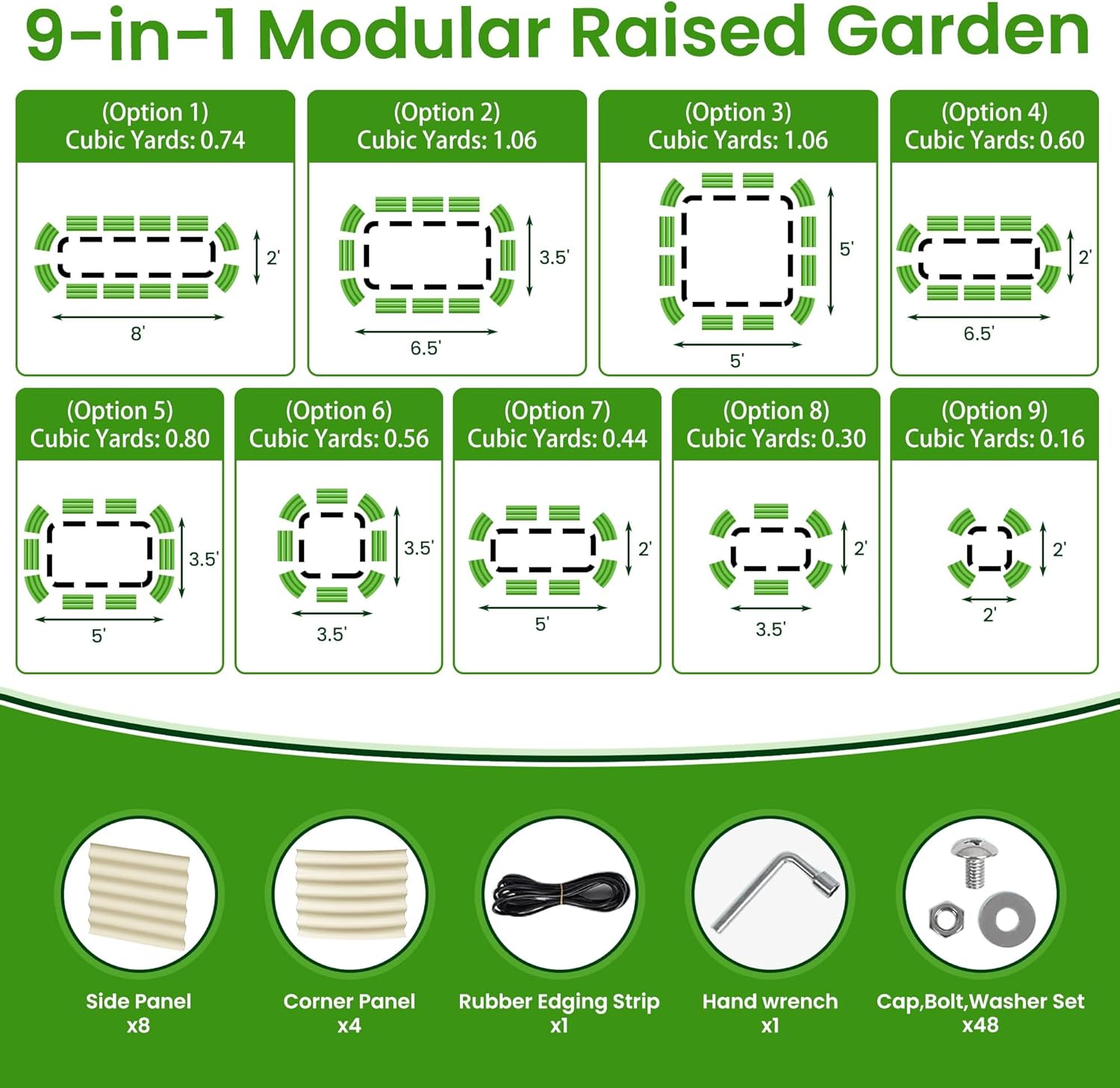 - Modular Raised Garden Bed:Our 9-in-1 modular kit means you can assemble one of 9 configurations,Pick your favorite one and then assemble your garden bed to fits your unique home garden space perfectly.