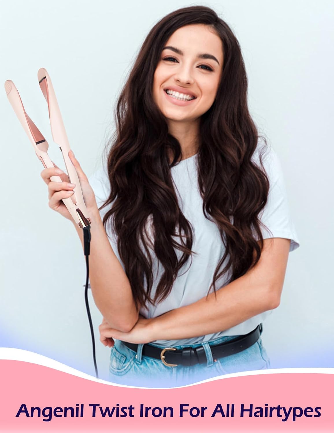 - 🌟【SALON-LEVEL PRO TWIST HAIR STRAIGHTENER】Our straightener adopts advanced PTC heating technology, and ANGENIL focuses on women's hairdressing, which can quickly and easily create professional salon level styling. It has 11 levels of adjustable fine temperature ranging from 250 ° F to 450 ° F, which can intelligently maintain a constant temperature, protect hair from damage, and enhance the natural luster of hair