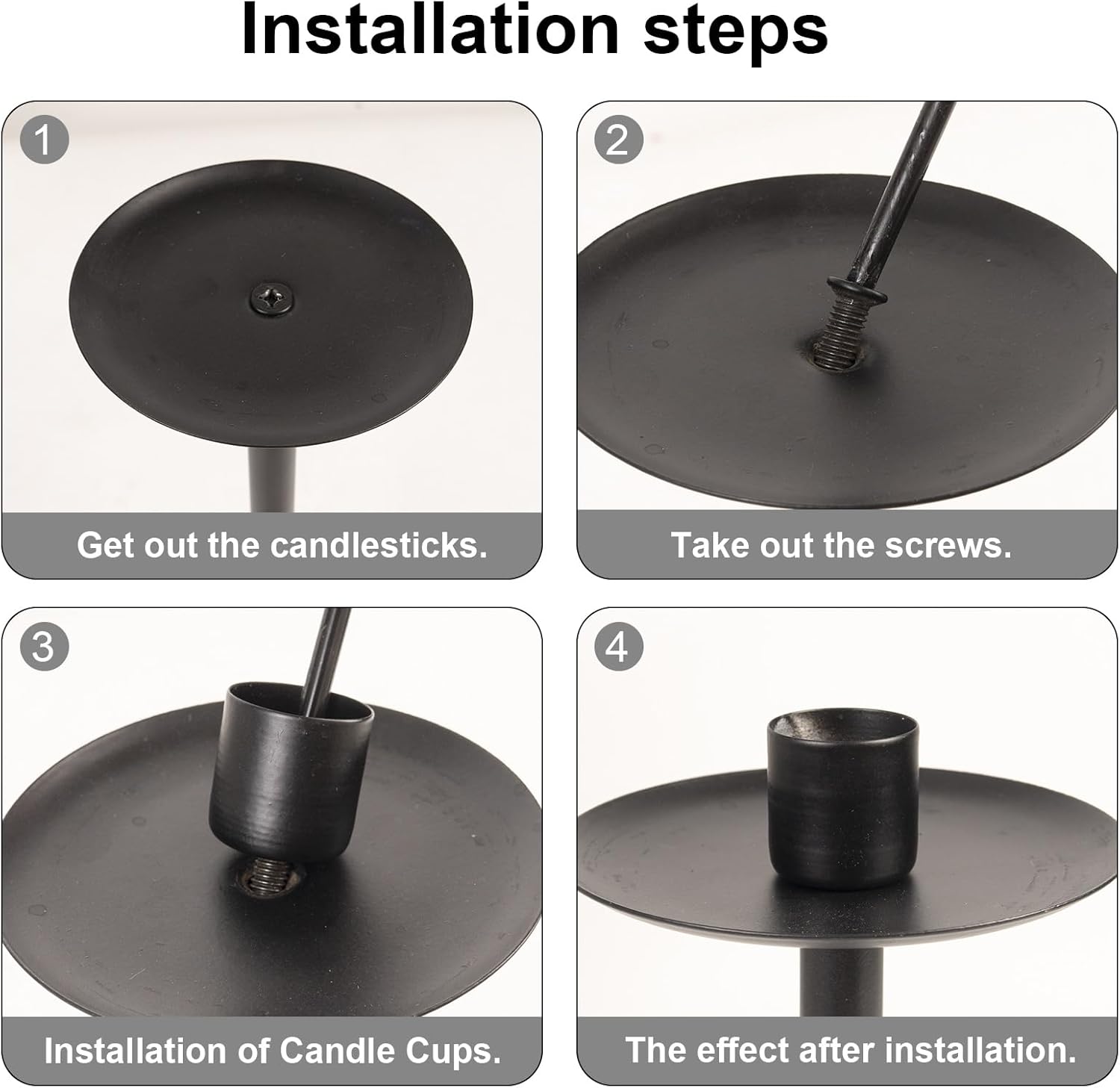 Set of 7 Metal Black Candle Holders, Assemblable Pillar and Taper Candlesticks, Halloween Fall Thanksgiving Day Dining Table Centerpieces Decor, Mantle Fireplace Candle Sticks Decorations