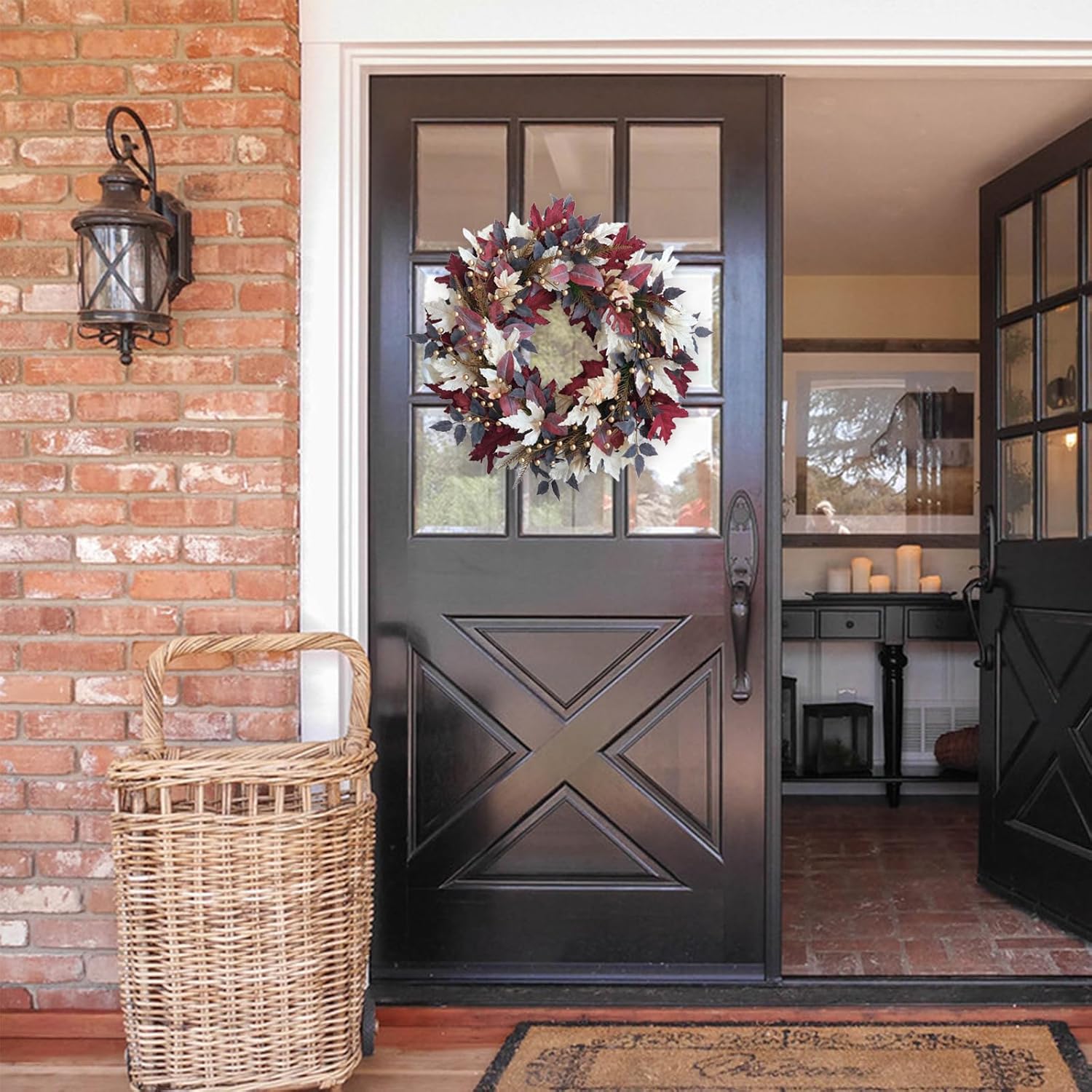 - Versatile Decor: Perfect for both indoor and outdoor display, this farmhouse-style wreath adds a warm, seasonal touch to front doors, walls, or mantels