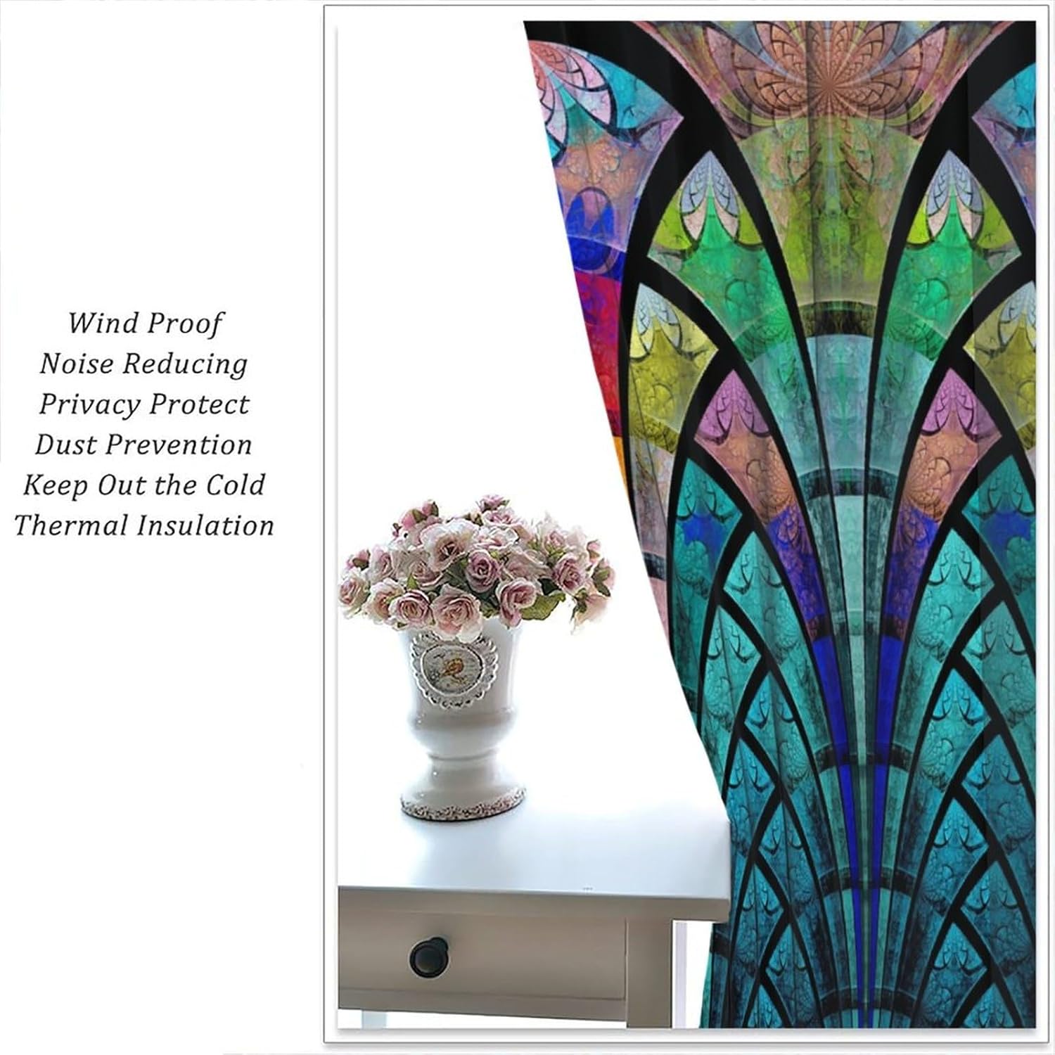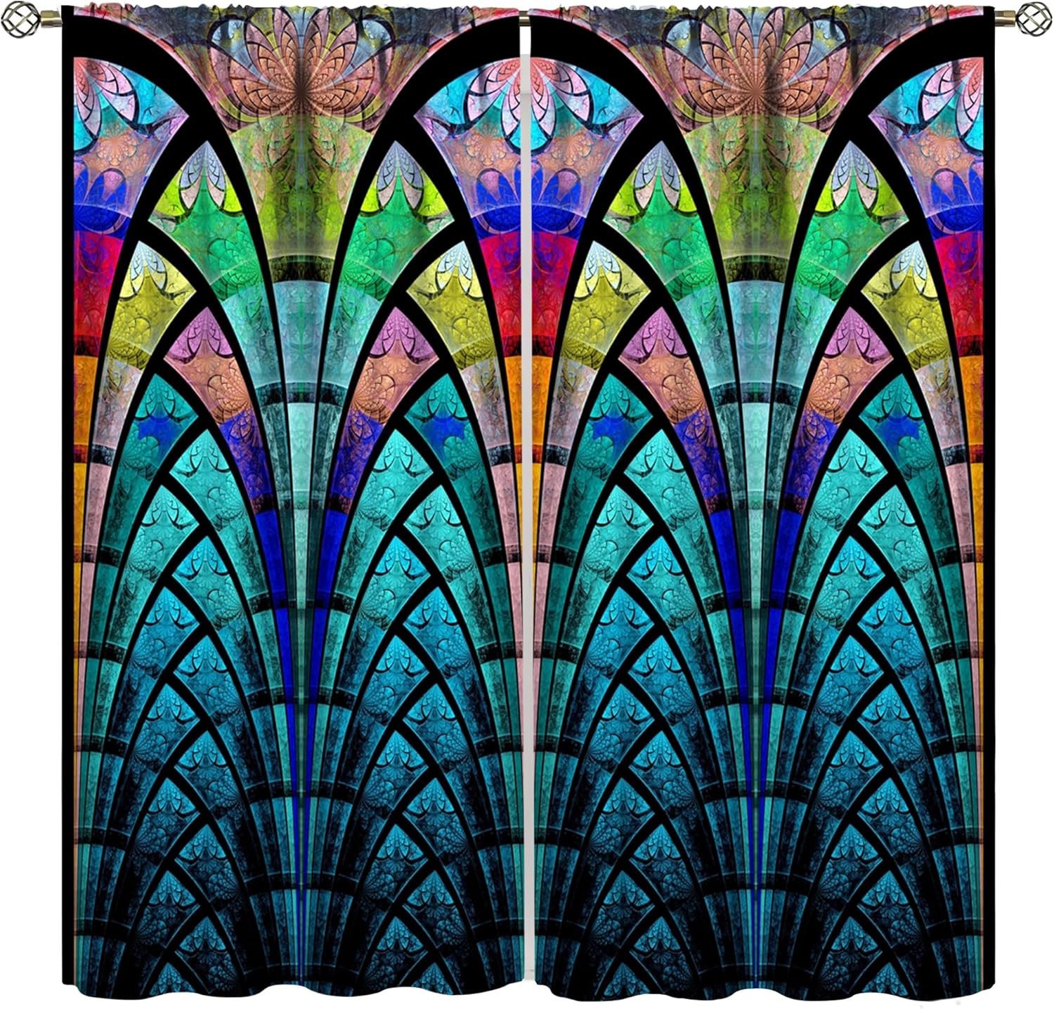 Stained Glass Curtains,Retro Design Style Colorful Abstract Art Home Decor Drapes for Bedroom Living Room Kitchen Window Treatment 2 Panels Set Total Size 42" W X 54" L Inch