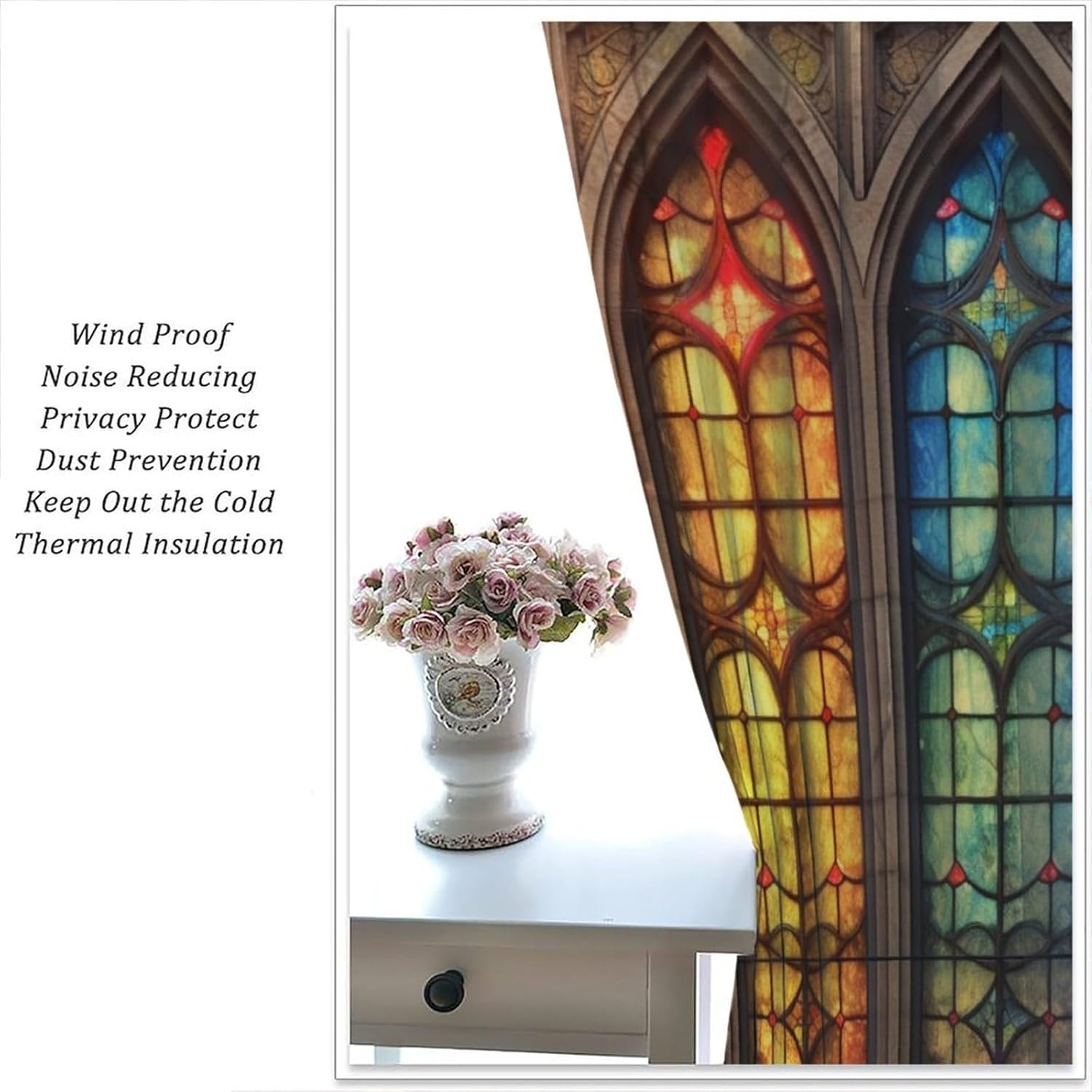 Stained Glass Curtains,Mid Century Vintage Style Abstract Art Home Decor Drapes for Bedroom Living Room Kitchen Window Treatment 2 Panels Set Total Size 52" W X 84" L Inch