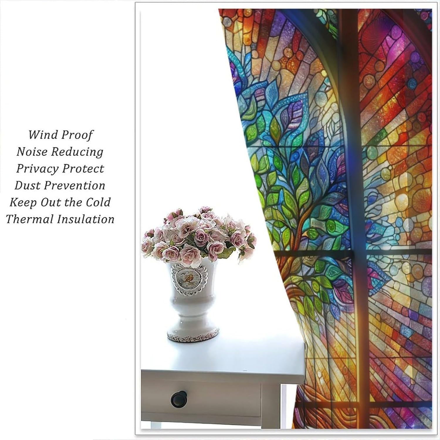 Stained Glass Curtains,Tree of Life Colorful Abstract Art Home Decor Drapes for Bedroom Living Room Kitchen Window Treatment 2 Panels Set Total Size 84" W X 84" L Inch