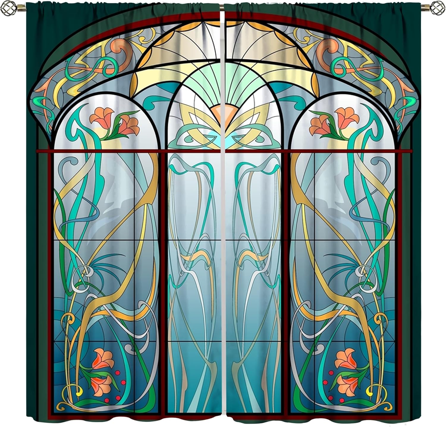 Stained Glass Curtains, Retro Mid Century Boho Abstract Art Home Decor Drapes for Bedroom Living Room Kitchen Window Treatment 2 Panels Set Total Size 63" W X 72" L Inch