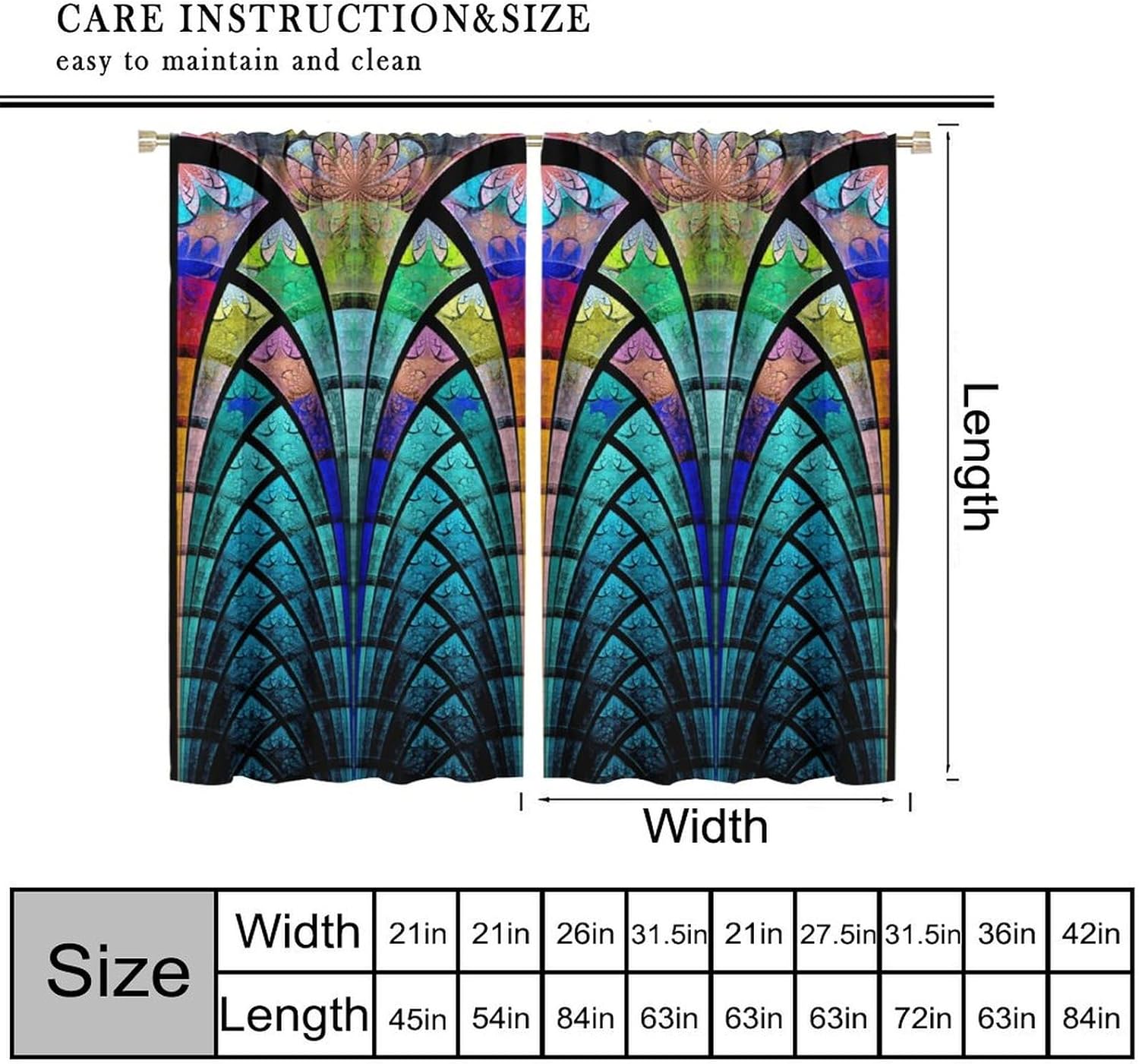 Stained Glass Curtains,Retro Design Style Colorful Abstract Art Home Decor Drapes for Bedroom Living Room Kitchen Window Treatment 2 Panels Set Total Size 63" W X 72" L Inch
