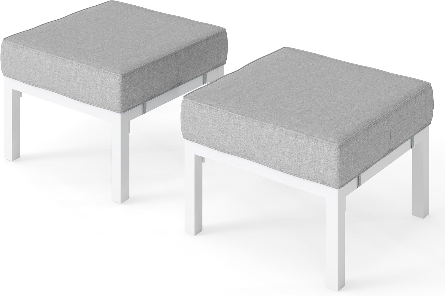 Solaste Outdoor Footstools Patio Ottoman Set of 2, Aluminum All-Weather Outdoor Footrest Seat with Removable Cushions, Patio Furniture Ottomans for Garden, Backyard, Poolside-White