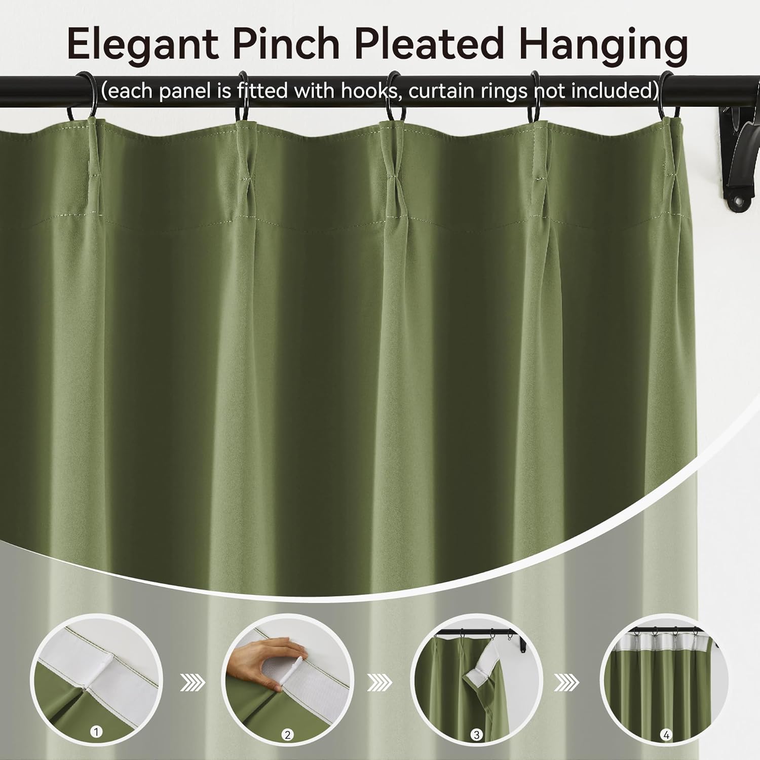 KangBang 60” Wide Sage Green Blackout Curtains 102 Inches Long, Pinch Pleated Thermal Insulated Sliding Door Curtains & Drapes for Living Room French Door, Elegant Modern Decor, 60x102 Inch,2 PCs