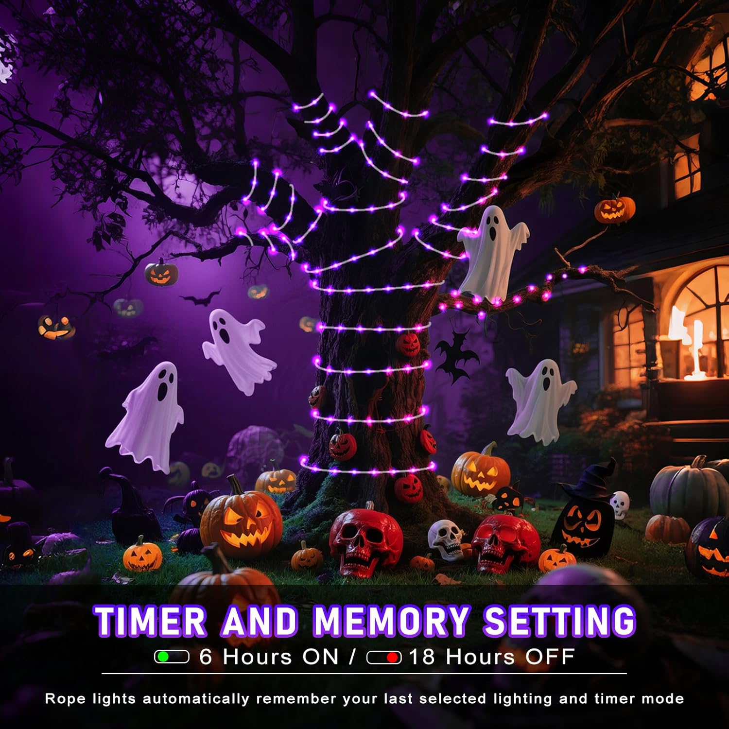 - 【Upgraded Connectable Rope Lights】- Our rope lights for outside feature a 100ft lighting length with a 6.6ft lead wire, total 106.6ft length. LED bulbs are spaced 4 inches apart to provide bright and soft lighting. The Halloween lights can be connected end to end up to 4 sets, long enough to meet your creative lighting decor needs.