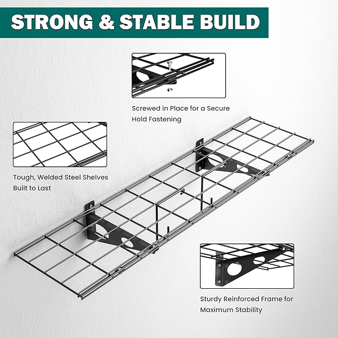 - EASY TO INSTALL: Designed for convenience, this garage wall shelf includes all necessary hardware and clear, step-by-step instructions. No complicated tools required—just a quick, hassle-free setup to get organized fast