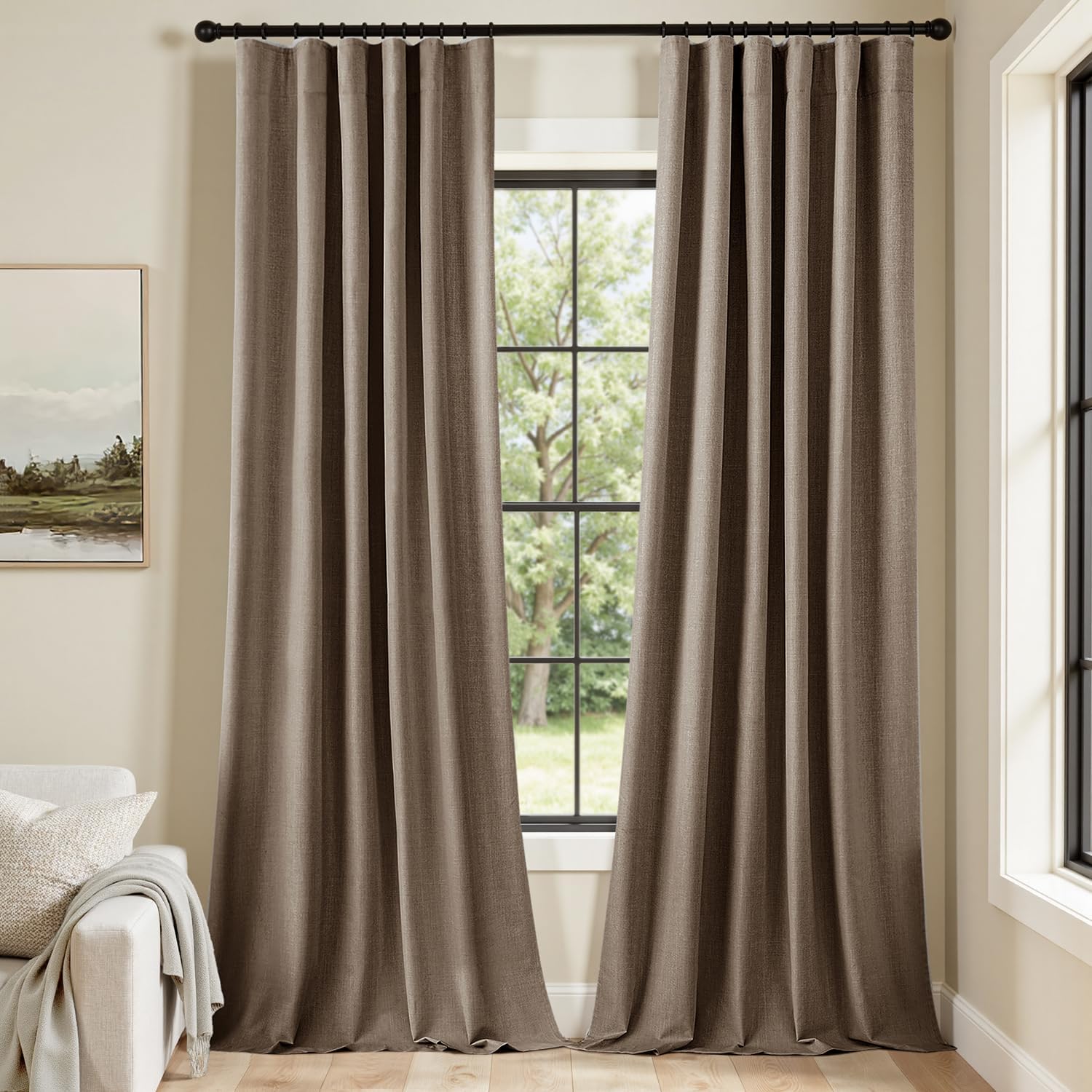 MIULEE 100% Blackout Curtains 96 Inch Long 2 Panels Set for Bedroom, Thick Faux Linen Black Out Curtain Room Darkening Back Tab Pleat Window Textured Drapes with Hooks for Living Room, Dutch Cocoa