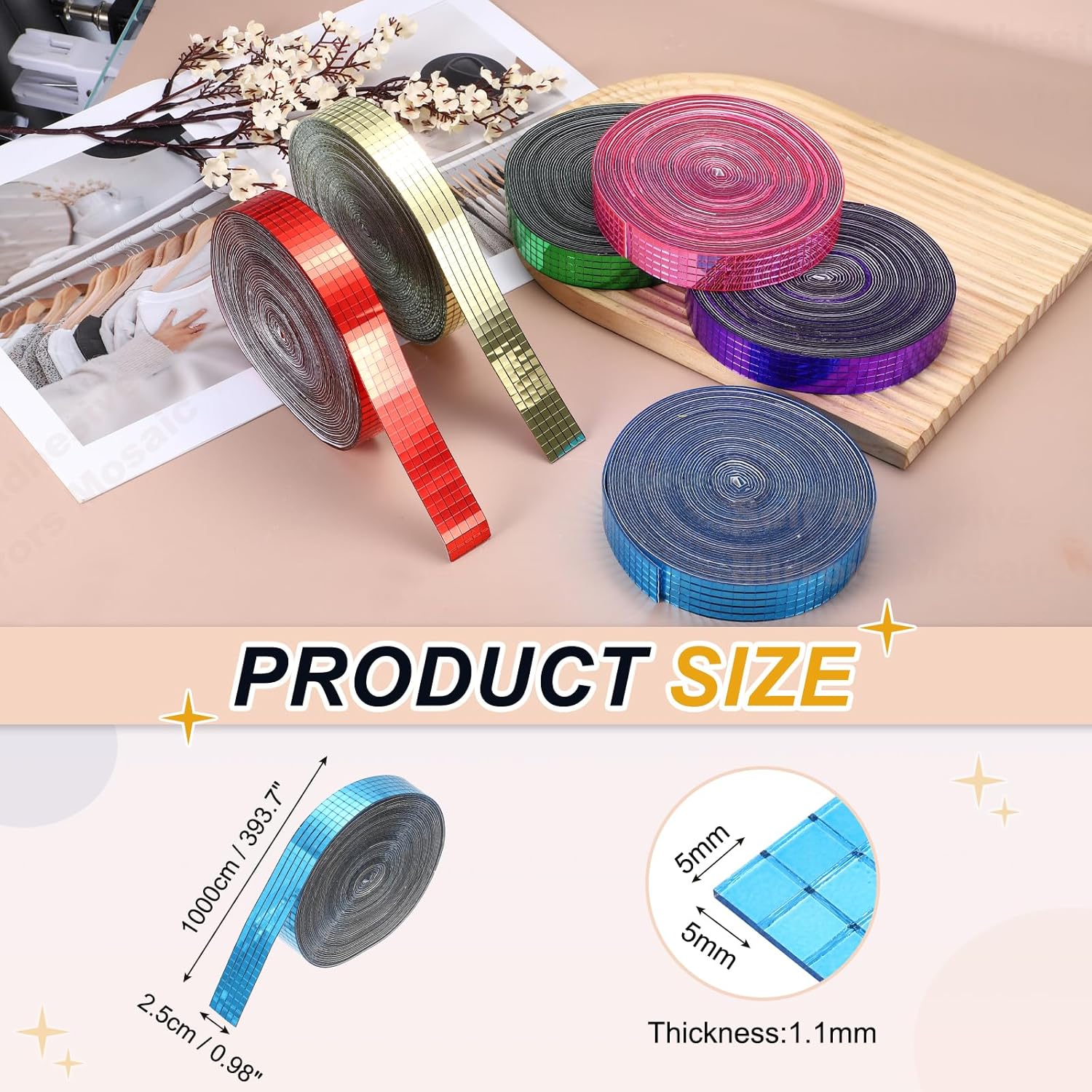 - Specification: Color: Light Blue; Material: Glass; Size:1000x2.5cm/393.7x0.98Inch(LxW); Thickness:1.1mm/0.04inch; Each Tile Size: 5x5mm/0.2x0.2inch; Packing List: 10000 Pcs x Self Adhesive Mirrors Mosaic Tiles (Roll of 1)