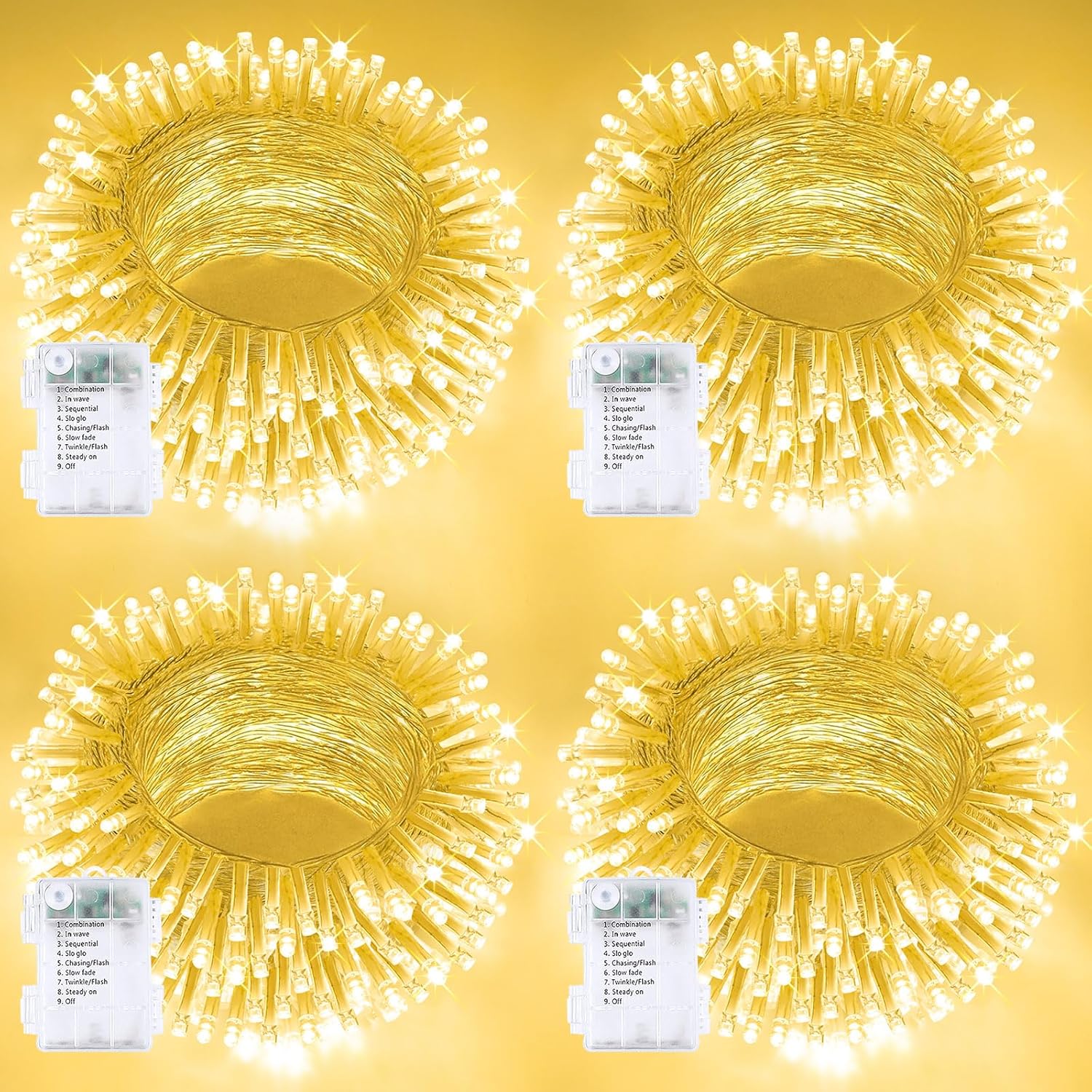 4 Pack String Lights Battery Operated with Timer, 132FT 400 LED Waterproof Battery Twinkle Lights, 8 Modes Fairy Light for Indoor Outdoor Party Bedroom Garland Tree Christmas Decorations (Warm White)