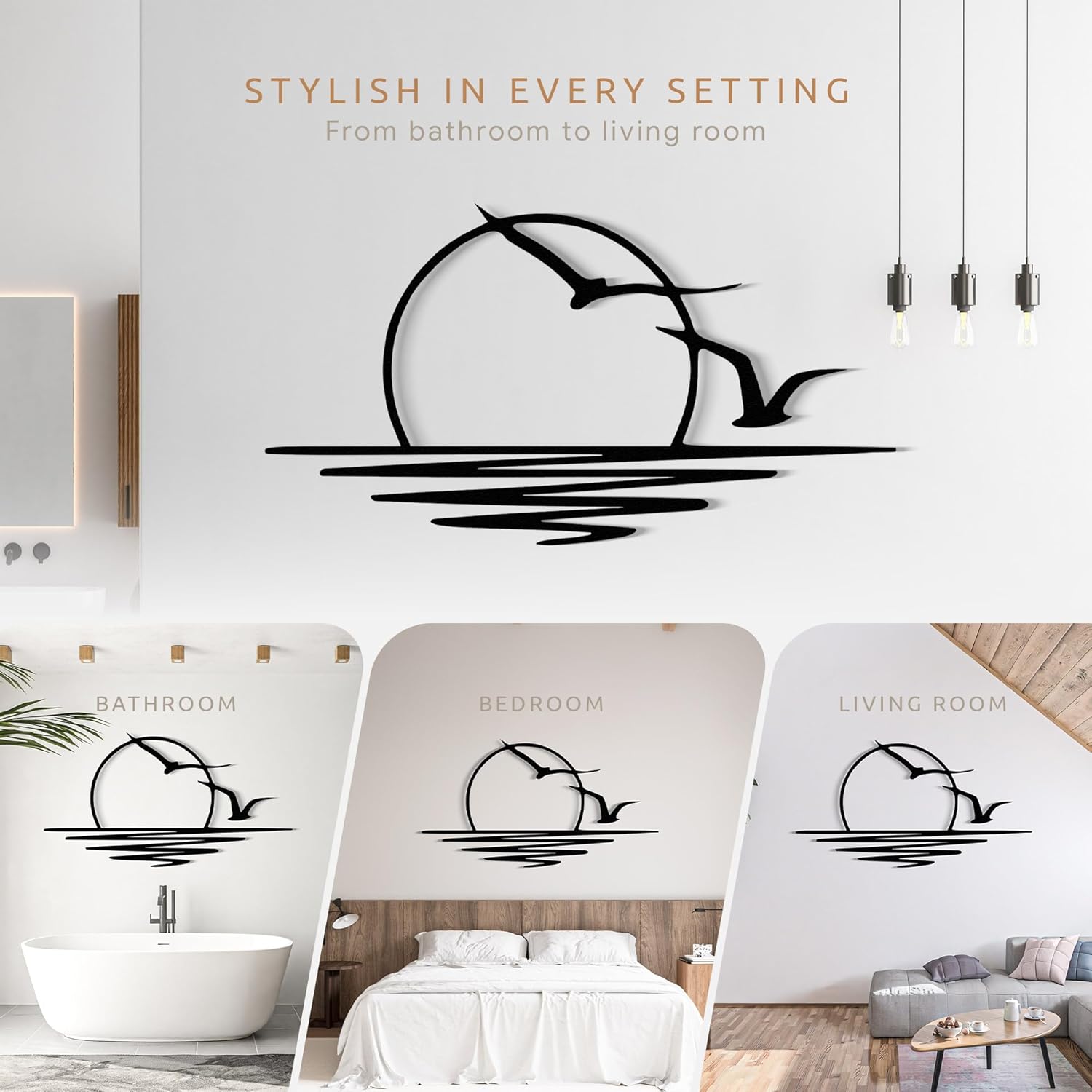 - CAPTIVATING SUNSET SCENE: Handcrafted metal wall art featuring a vibrant sunset scene with seagulls, perfect for adding coastal charm to any living room or bedroom.