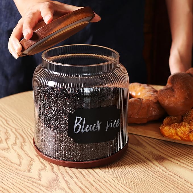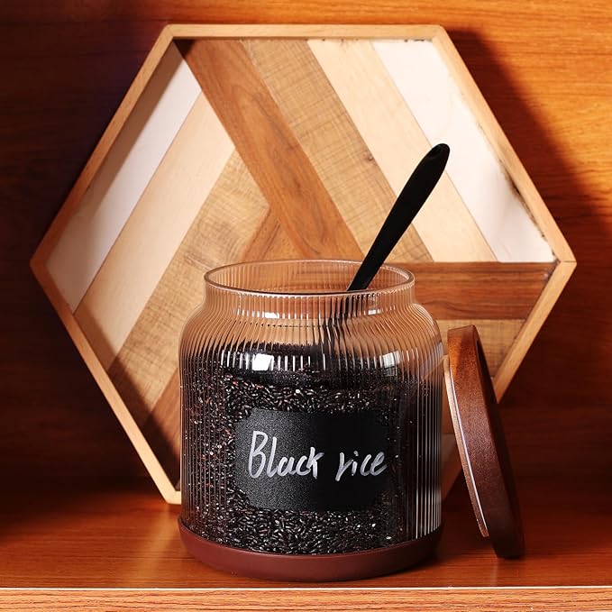 - Complete Set with Accessories**: Includes a silicone ring spoon, black labels, and a non-slip silicone base, enhancing functionality and organization in your storage spaces.