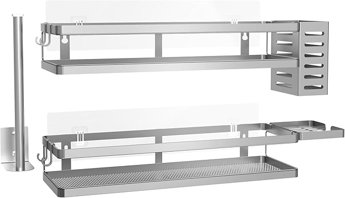 PUSDON Metal Wall Hanging Basket 2 Packs DIY Suitable for Multiple Scenes - Large Silver Grey Guardrail Suit