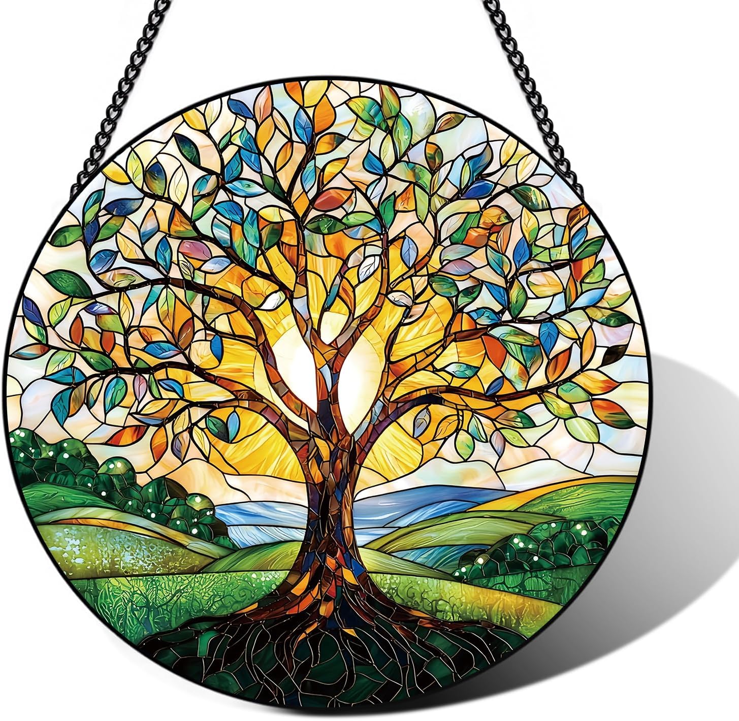 - Exquisite Design: Finished with vibrant stained glass, this Tree of Life suncatcher captures sunlight beautifully, adding warmth to any space