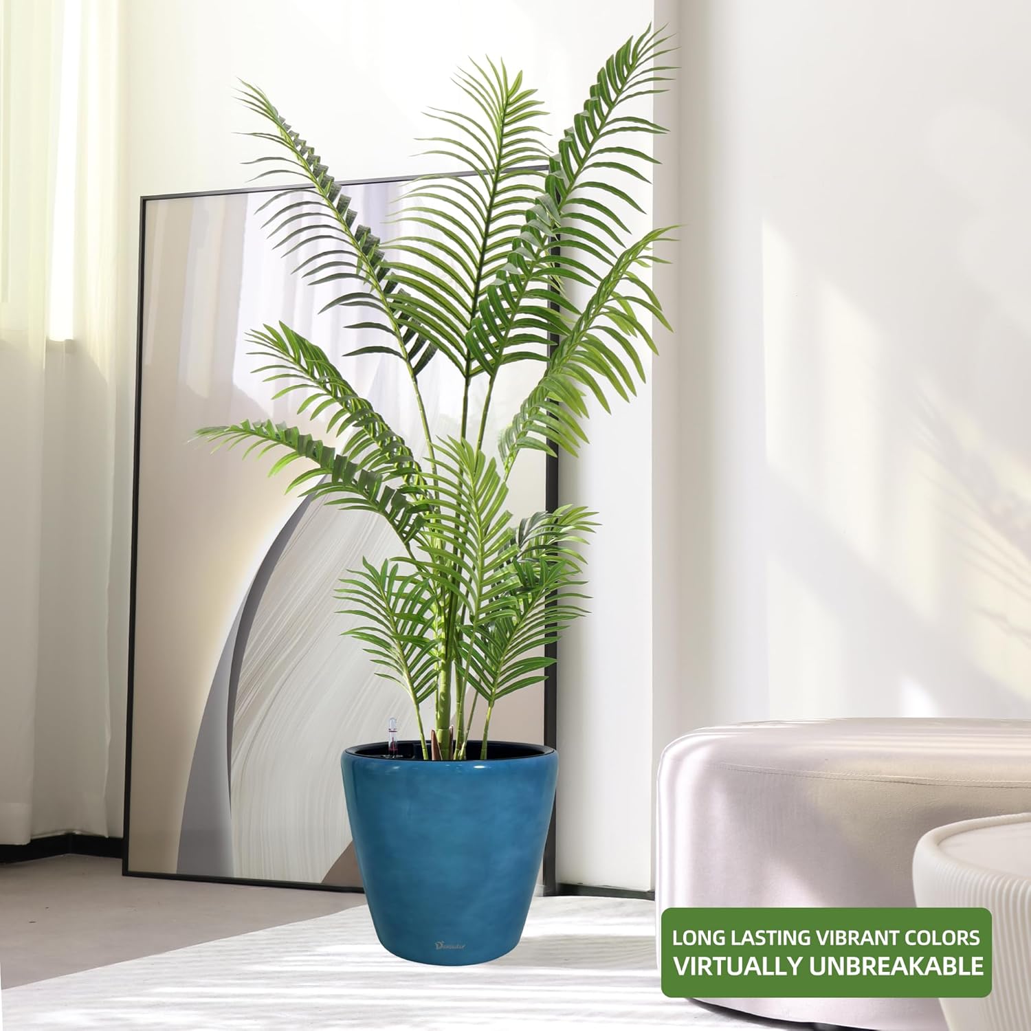 Dexceder 13x12 Self Watering Planter with Wheels Indoor Outdoor, Inner Pot Design, Thickened Large Floor Standing Flower Plant Pot with Water Level Indicator (Peacock Blue Gradient)