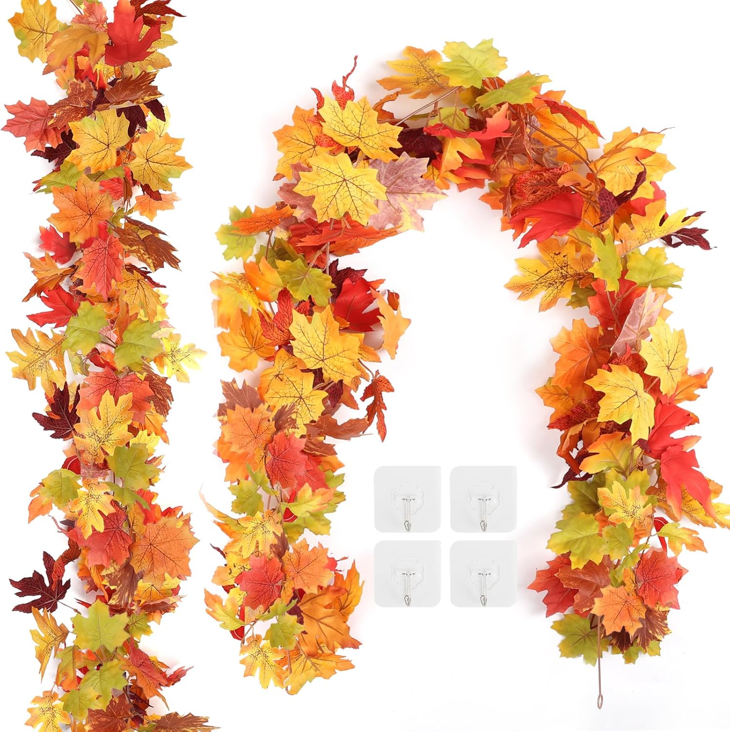 - Vibrant & Odor - Free: Our fall garland boasts excellent colorfastness, retaining vivid hues through seasons for fall decor. Resistant to fading, it maintains the vivid colors of maple leaves, ideal for Thanksgiving decor and fall mantel decor. Odorless, it enhances home mantles, offices, or porches as fall decorations for home porch , fitting seamlessly into fall garland setups like maple leaf garland.