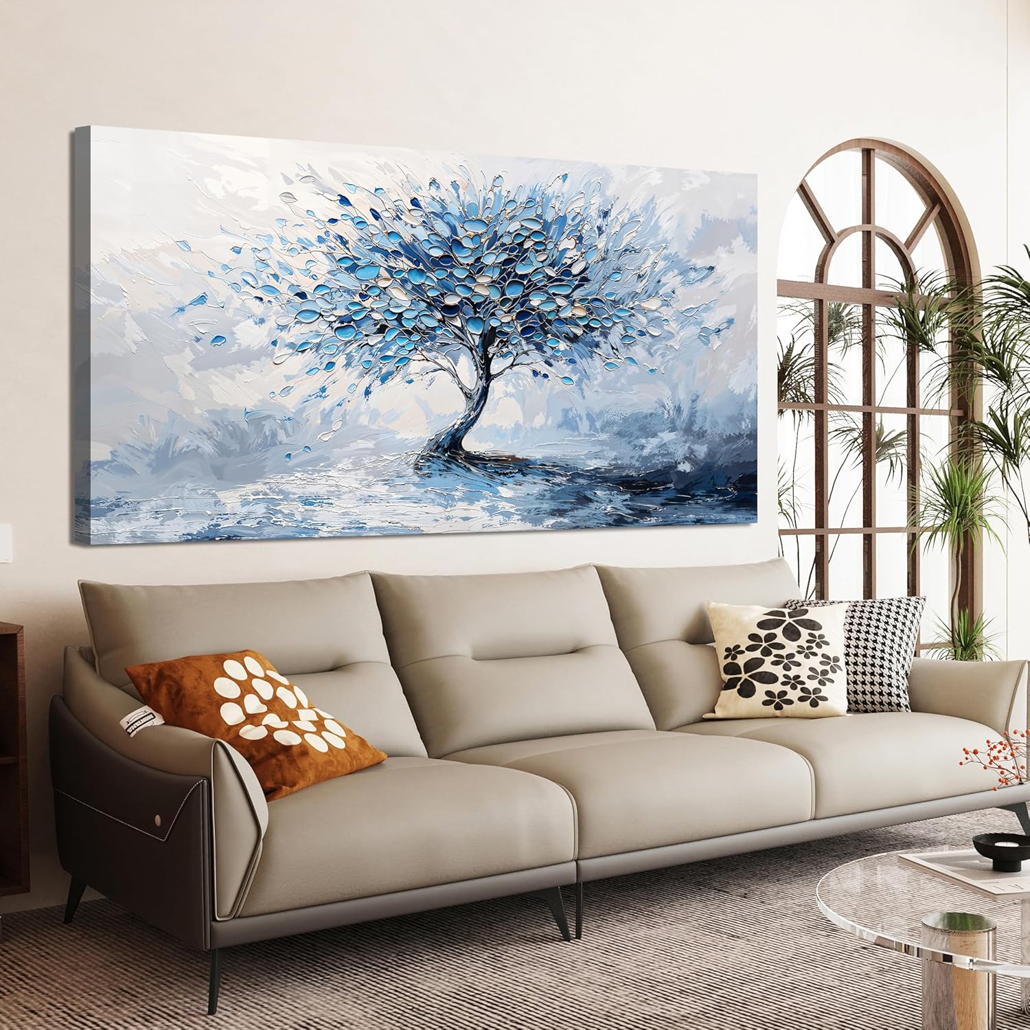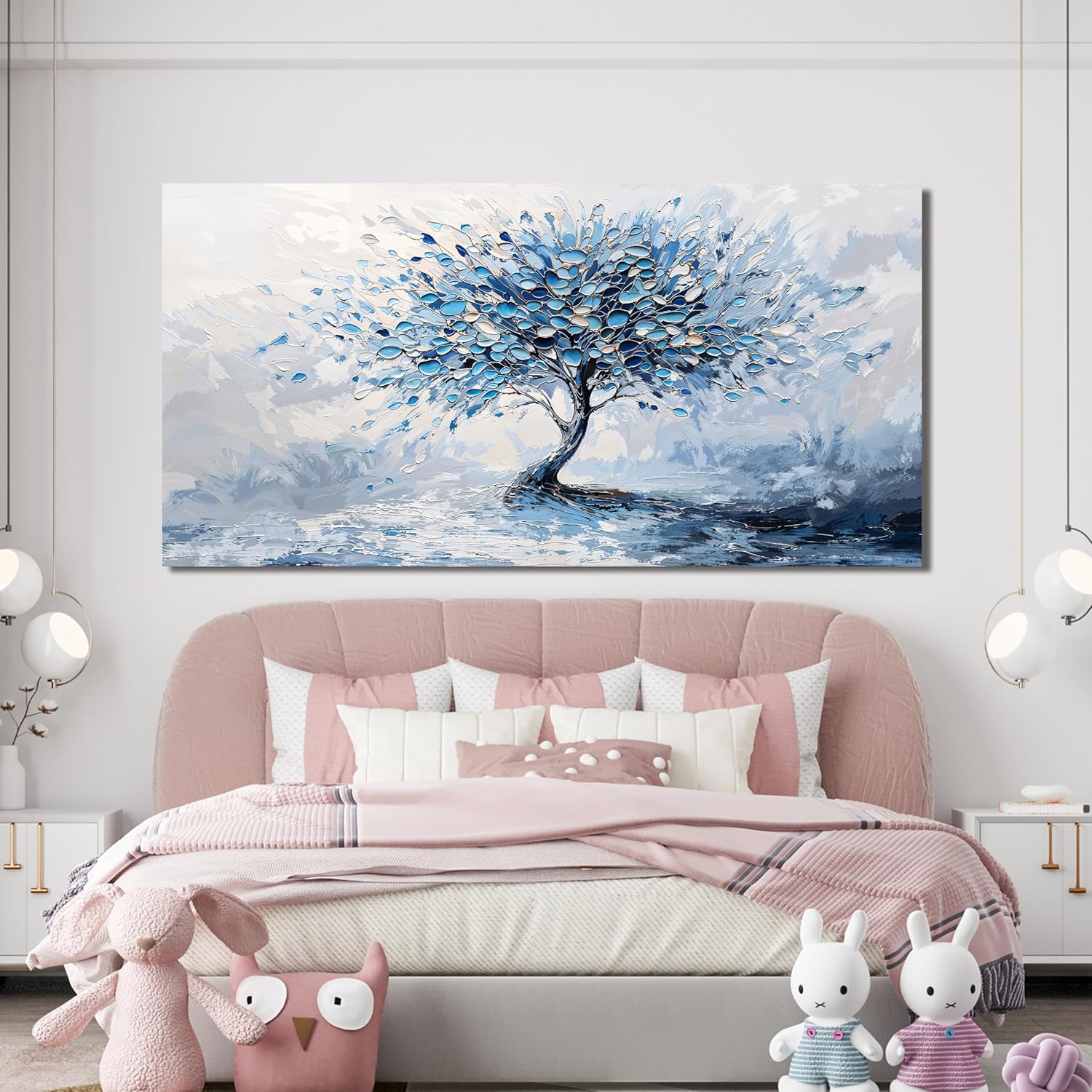 Large Canvas Wall Art Decor Modern Blue White Wall Art Prints Canvas Art Wall Decor Wall Art Pictures for Living Room Artwork for Walls Abstract Art Tree of Life Wall Art Bedroom Office Decor 24"X48"