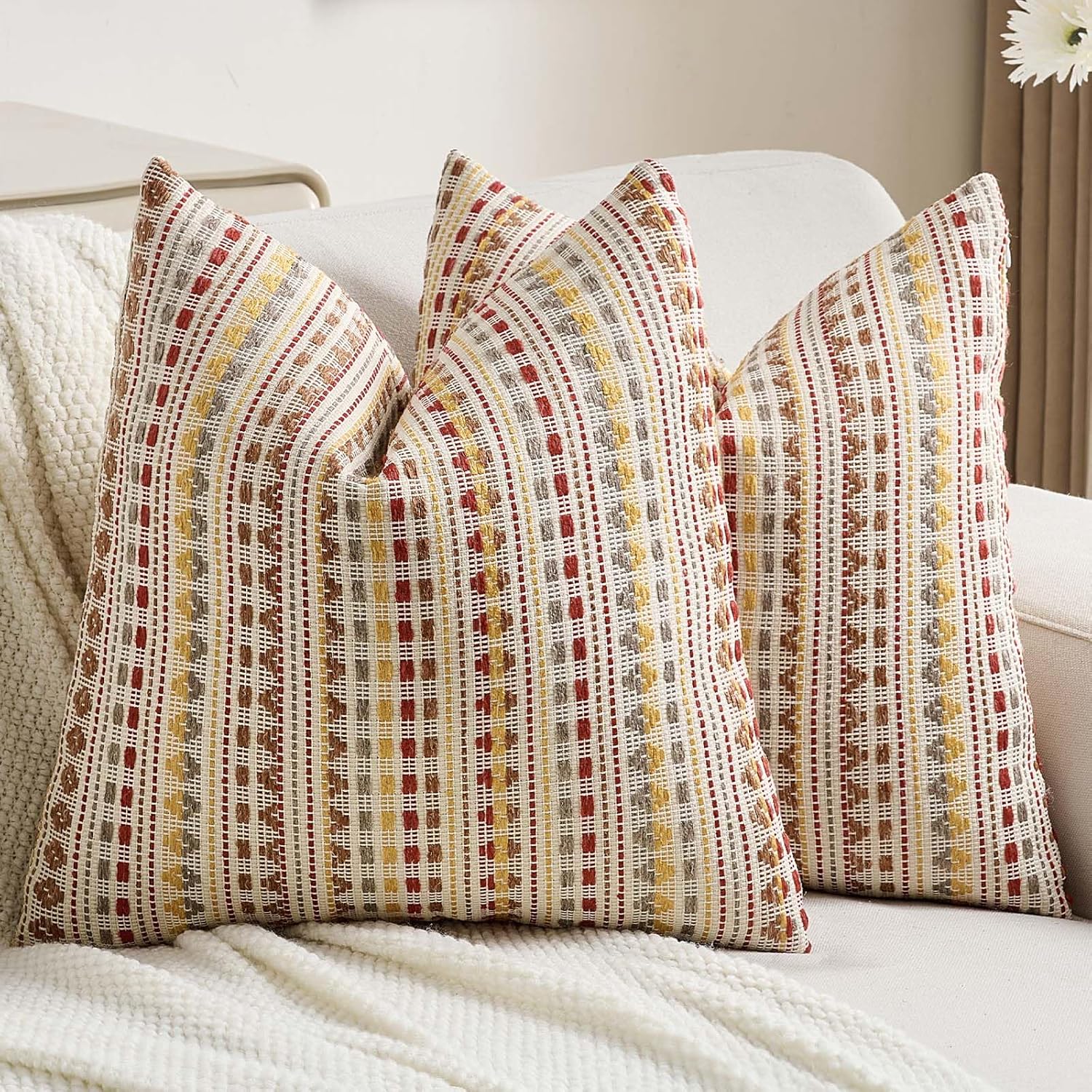 FUTEI Brown Red Decorative Throw Pillow Covers 20x20 Inch Set of 2,Soft Cozy Chenille Jacquard Textured Cushion Case,Boho Home Decor for Couch Bed Living Room