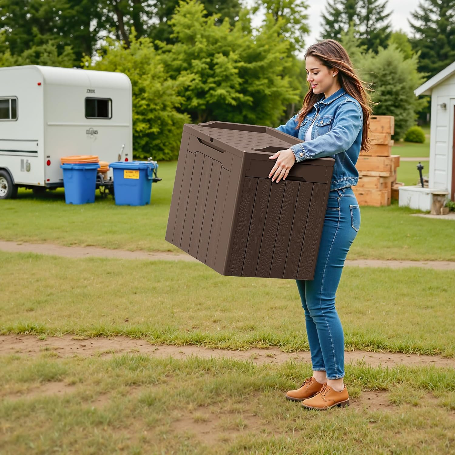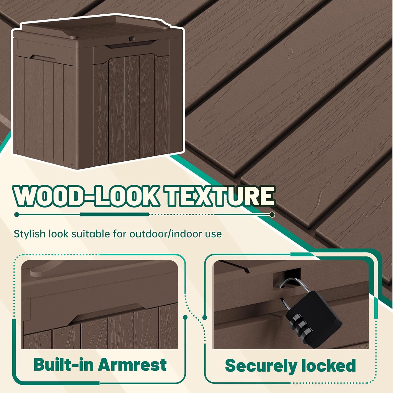 - Light & Solid: Made of a high density resin material, it is stable, waterproof and UV resistant. The net weight of this deck box is only 8.8 pounds