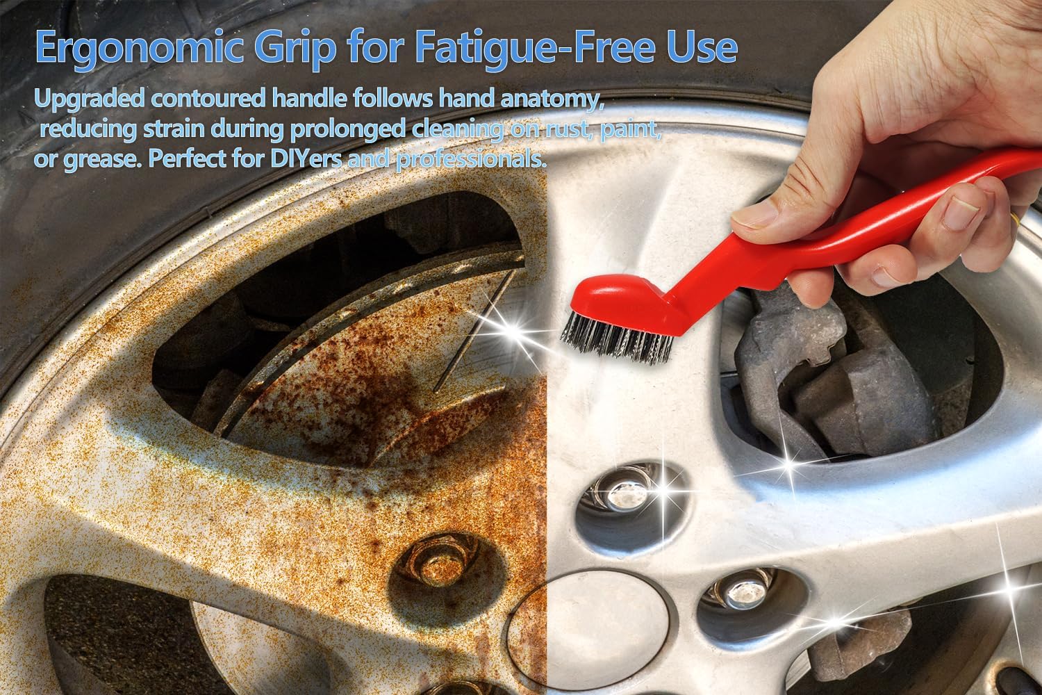- 40% Denser Bristles + Ultra-Stiff – Solves "Too Soft" Issues – Each brush has 29 stainless steel bristle clusters (vs. 20 in most 7" wire brushes), cutting through rust, grease, grime, and smoothing burrs with ease. Stiff, durable bristles resist bending, saving time and elbow grease on heavy-duty cleaning and deburring!