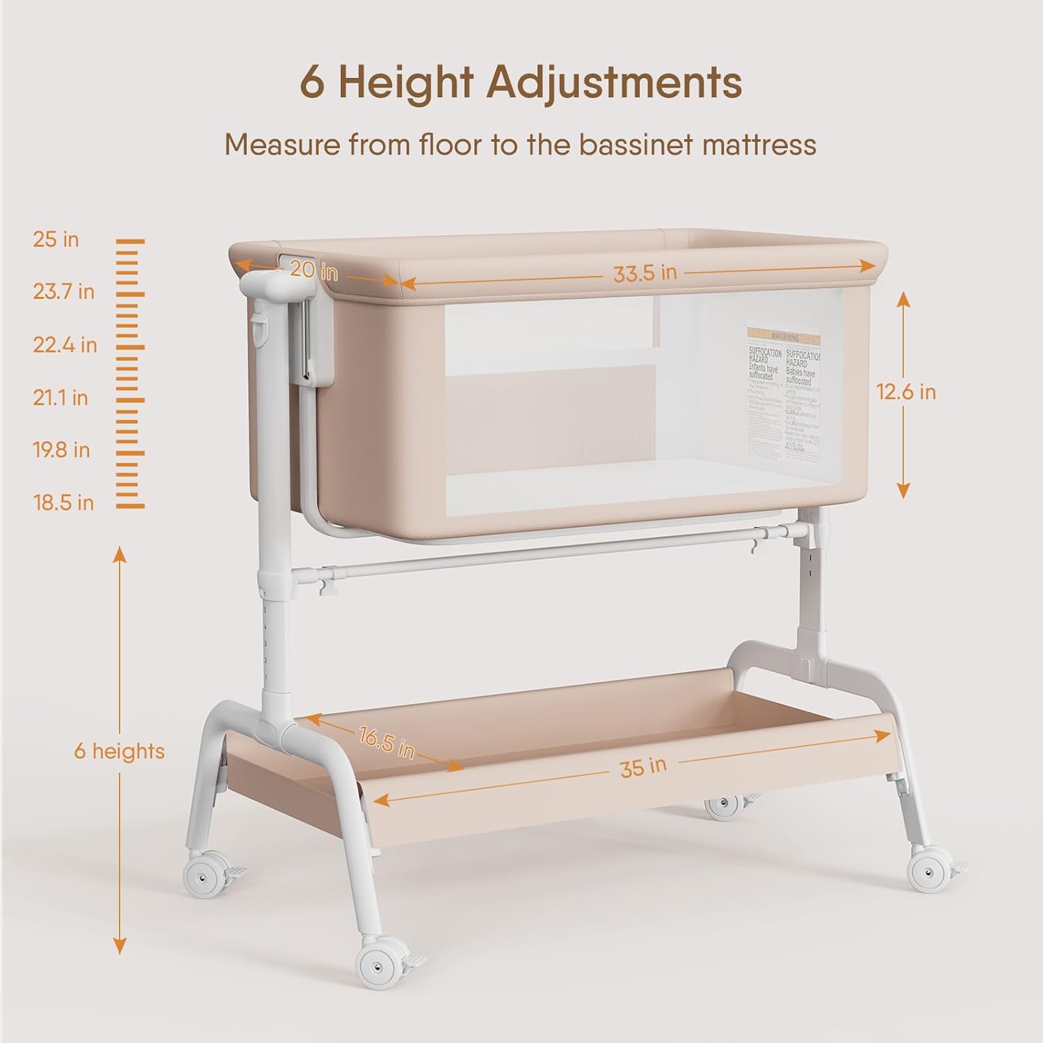 - 【Easy Access for Night Feeds】Designed for seamless bedside use, this bedside bassinet lets you reach your baby without getting out of bed—perfect for breastfeeding moms and those recovering from a C-section.