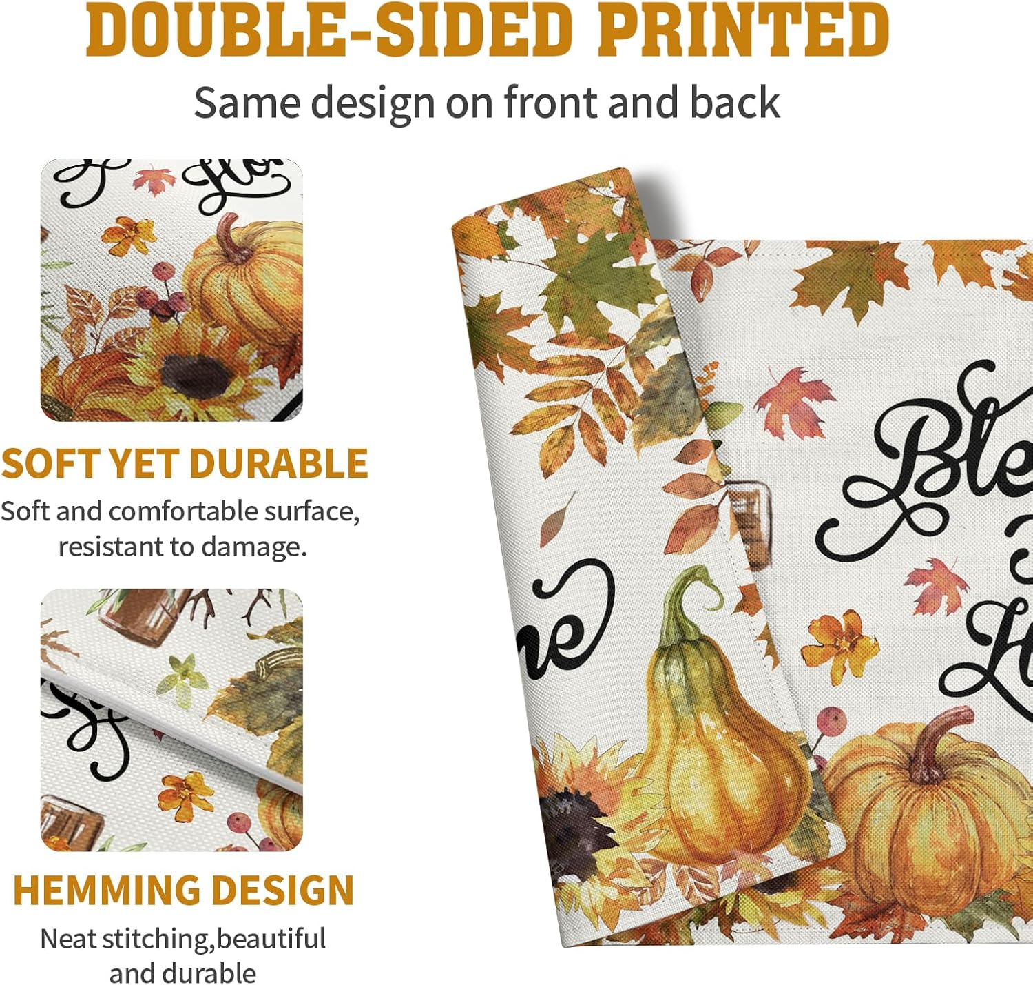 - EASY TO CARE: Thanksgiving autumn dining table mats are machine washable, laid flat to dry. Do not bleach. Keep as good as new after washing. Combined with practicality and aesthetics, it is easy to fold and occupies a small area. No wrinkles, no shrinkage