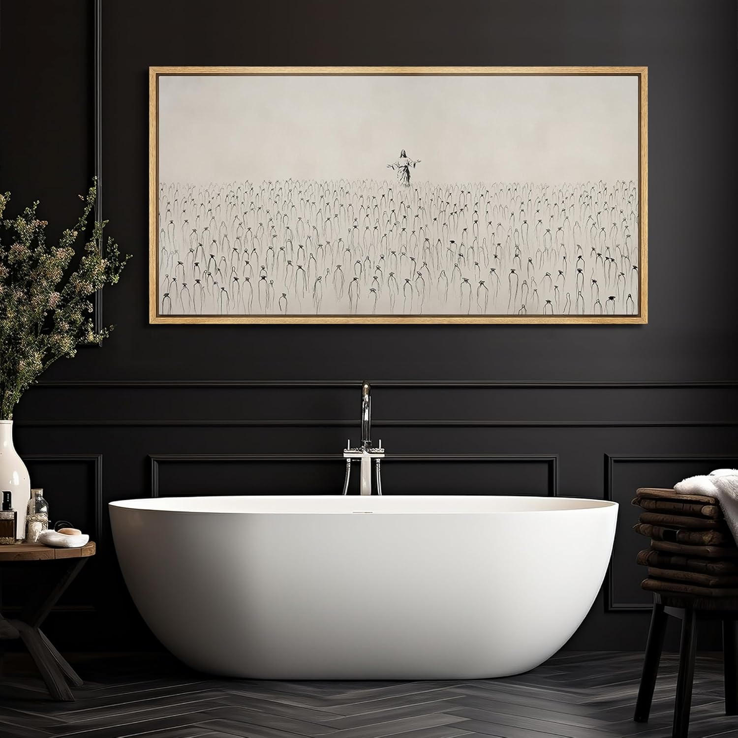 MUDECOR Extra Large Framed Canvas Print Wall Art Jesus Among The People Monochrome Religious Illustrations Decorative Colorful Multicolor for Bedroom - 60"x30"