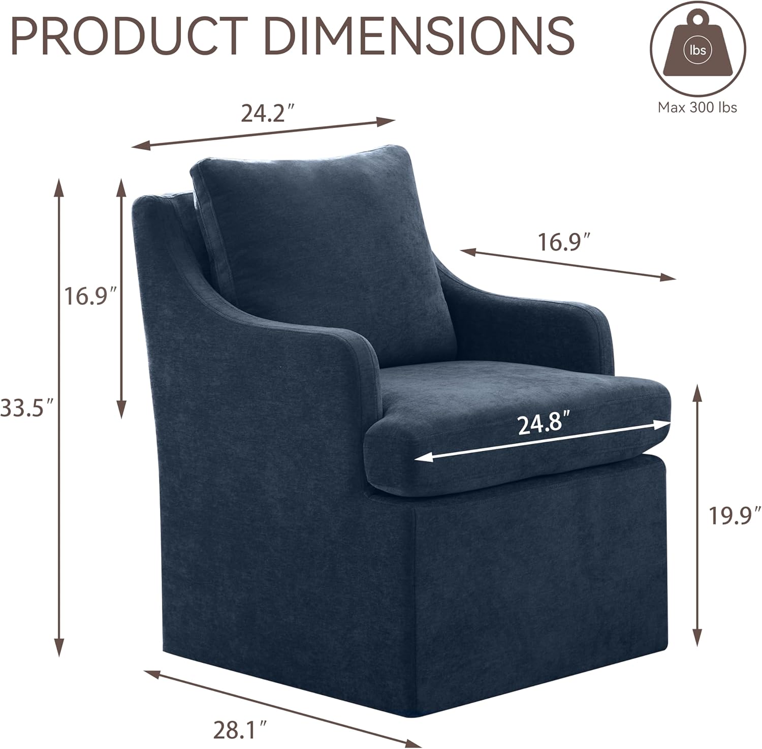 VKNOW Upholstered Dining Chairs, Modern Kitchen Chairs Dinner Chairs with 4 Casters, Linen Armchair for Bedroom Reading Room Living Room, Navy