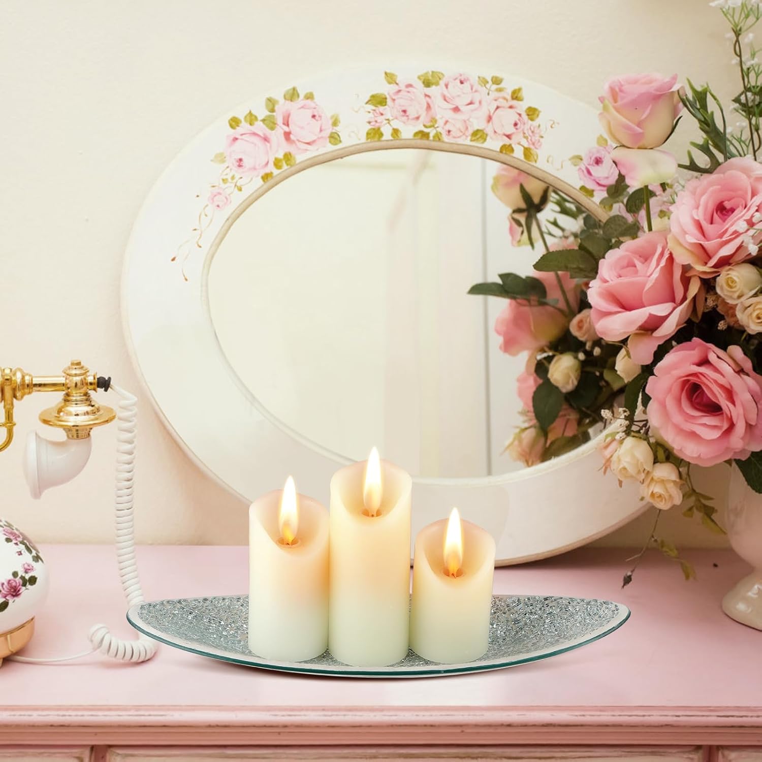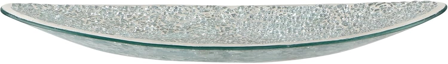 MDLUU Small Glass Mosaic Decorative Silver Boat Shaped Tray, Living Room Table Centerpiece Bowl, Home Decor Accent Plate for Orbs, Candles, Potpourri