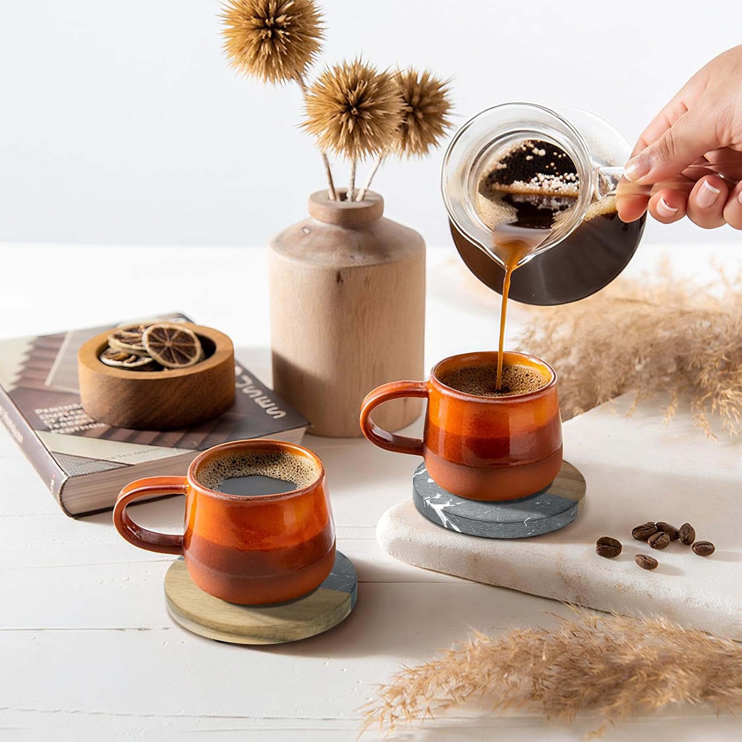 - ATTENTION that our coasters are made of artificial marble and natural coated acacia wood, NOT ceramic or pocelain, Not easy to break!