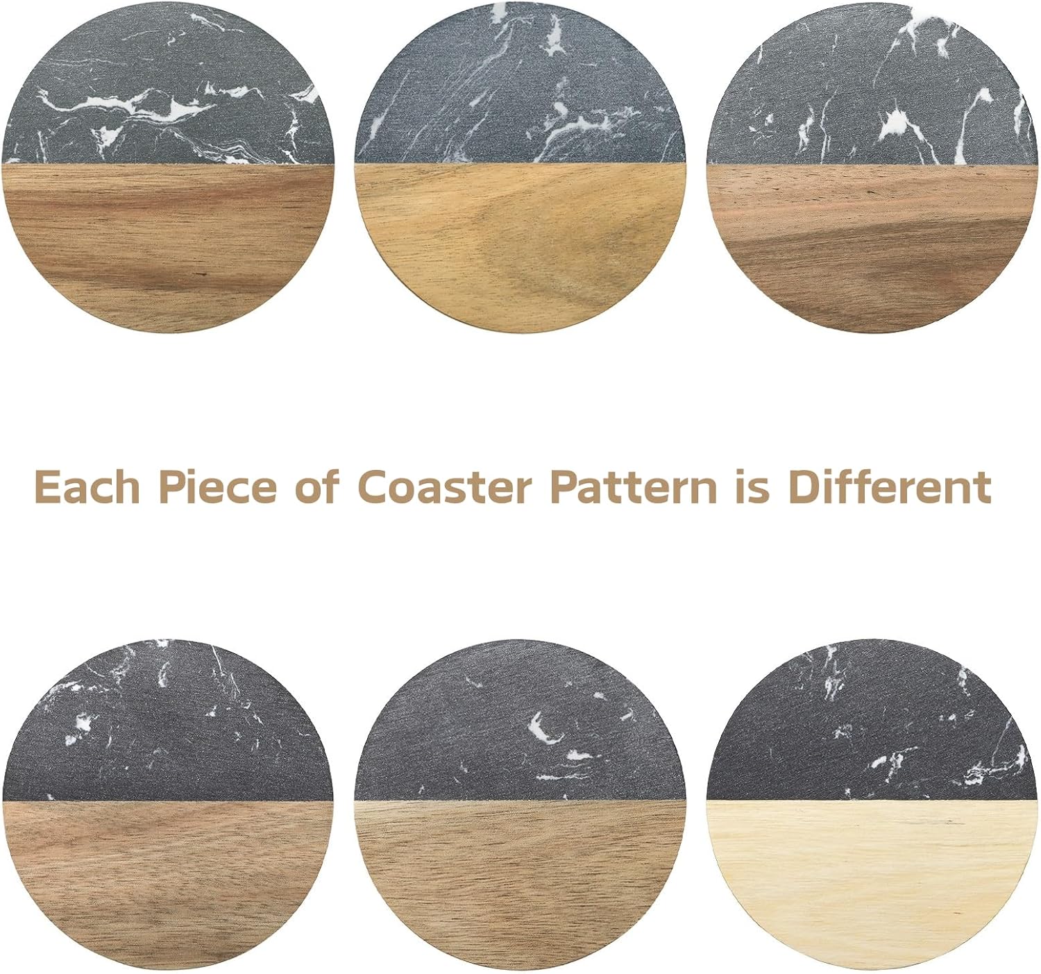- Modern Style Marble and Wood Coaster: Modern and simple design, elegant balck marble and natural coated acacia wood with good texture, makes this round coasters set stylish, also is a perfect home decor matching any decor style.
