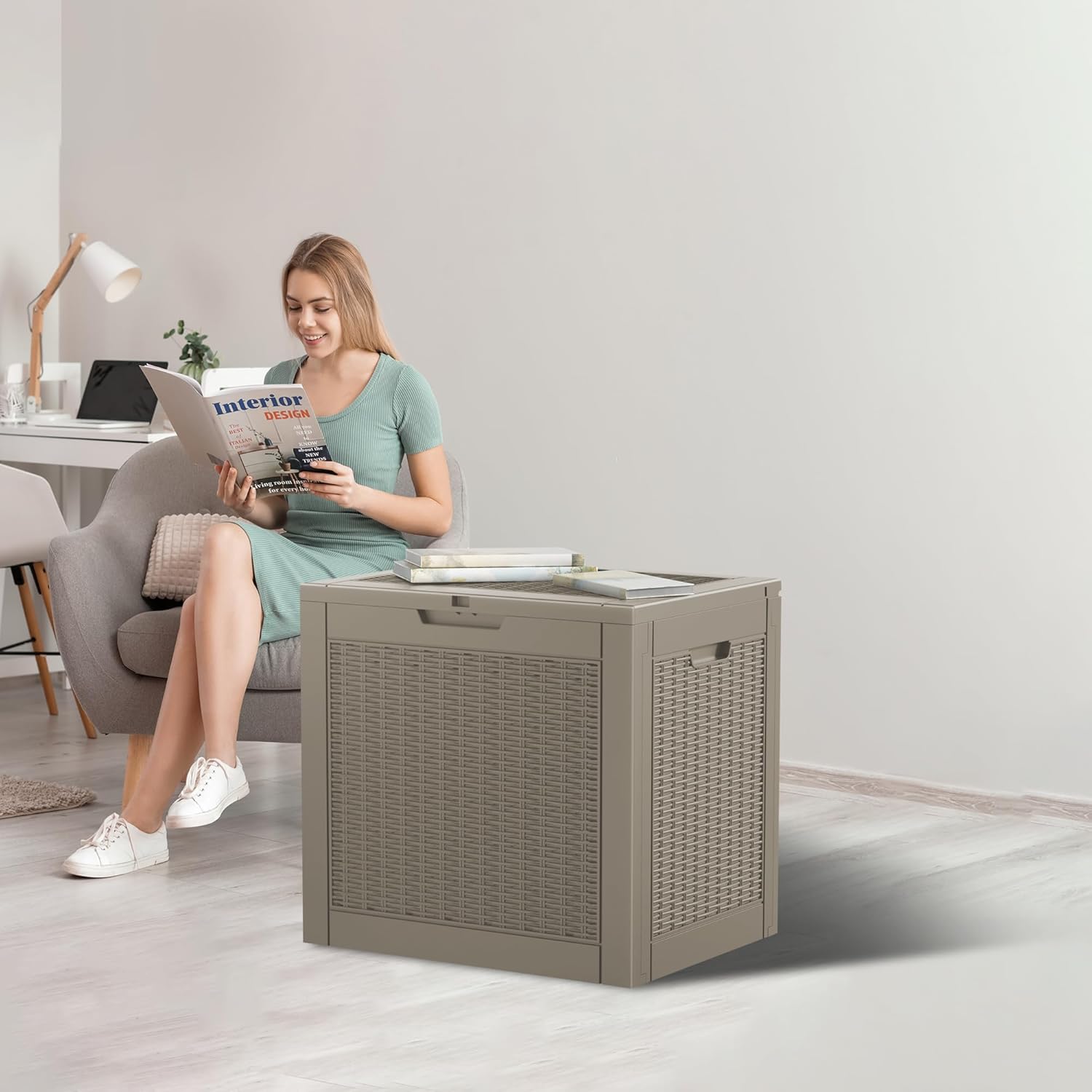 - Dual Indoor-Outdoor Functionality: This resin deck box transitions seamlessly between patio and indoor spaces, storing cushions, tools, or accessories while doubling as side tables or seating.