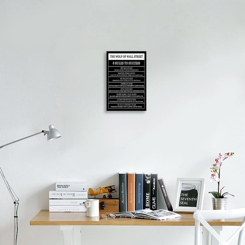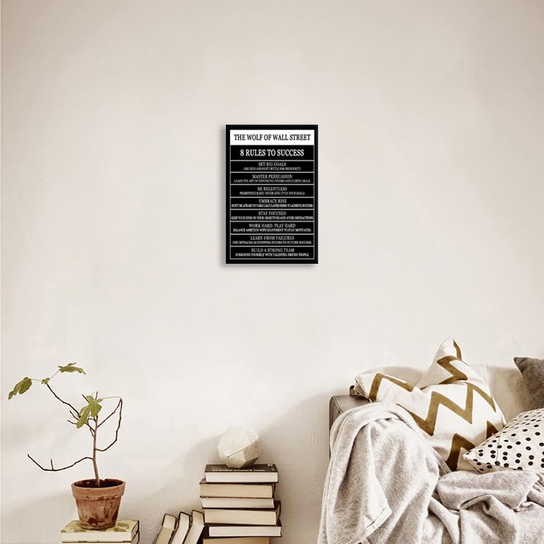 The Wolf Of Wall Street 8 Rules To Success Motivational Wall Art Printed Canvas Poster Inspirational Wall Decor for Office Hallway Gym Bedroom Living Room Framed Ready to Hang [12" W X 18" H]