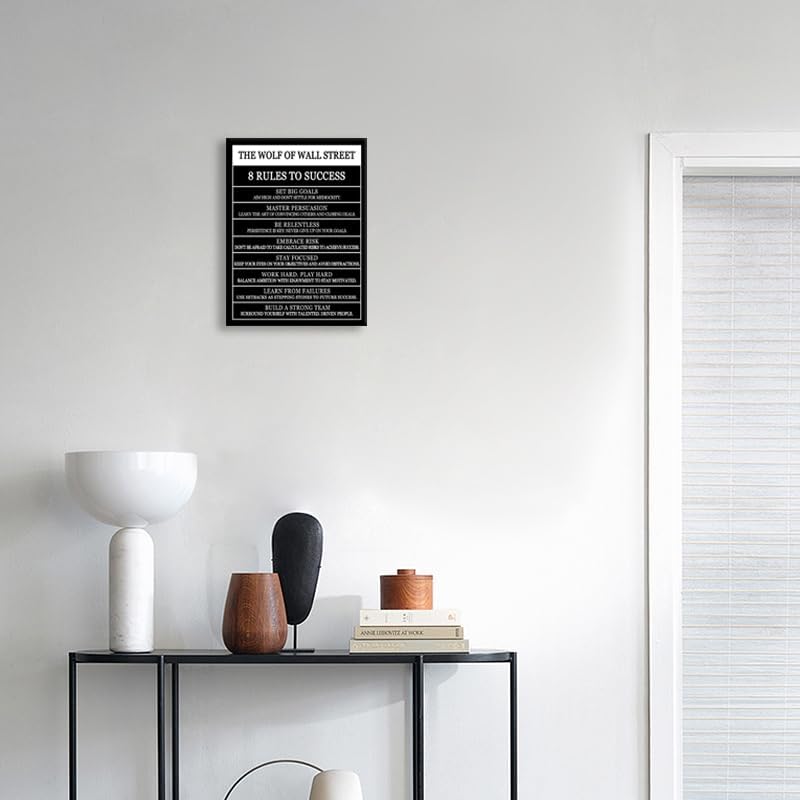 Motivational Wall Art The Wolf Of Wall Street 8 Rules To Success Printed Canvas Poster Inspirational Wall Decor for Office Hallway Gym Bedroom Living Room Framed Ready to Hang[18" W X 24" H]