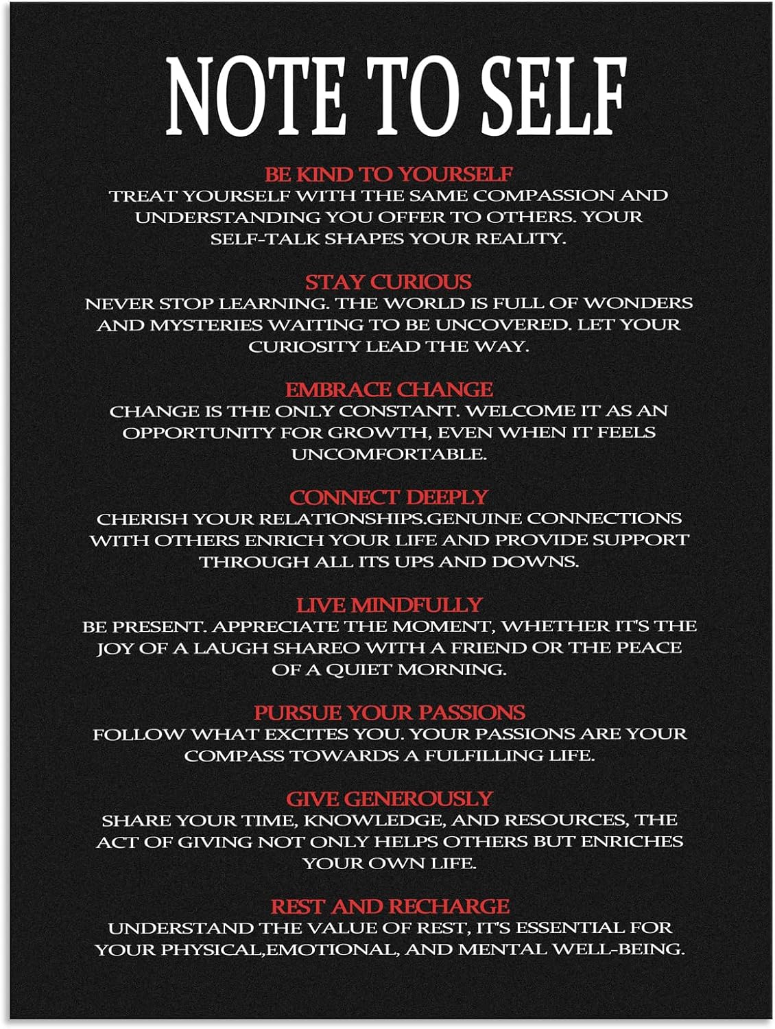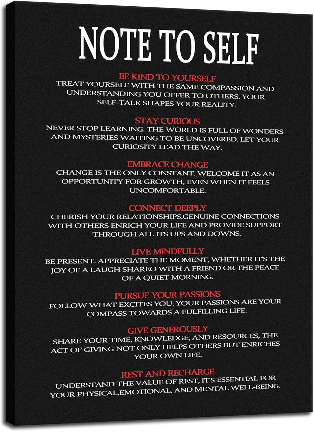 WYJDFART NOTE TO SELF Inspirational Canvas Poster Printed Modern Artwork for Office Living room Bedroom Home Motivational Wall Art Decor Framed Ready to Hang[18" W X 24" H]