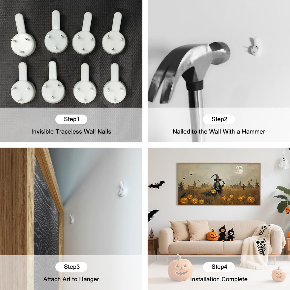 - [Easy To Hang] The size of this witchy halloween night wall painting is 16x24 inches (40x60cm). With the provided hanging kit, it's easy to display this artwork. Simply measure your wall space, hang it up, and enjoy the transformation of your space into a halloween themed one.
