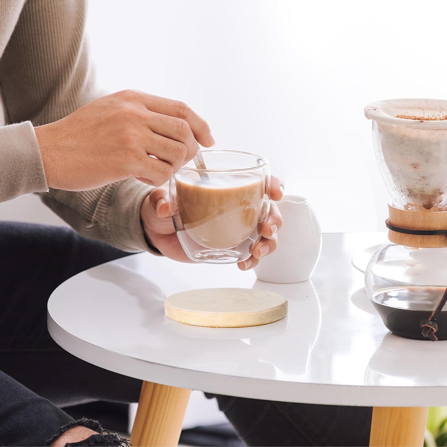 - 【Natural Marble Material】Our Beige NATURAL TRAVERTINE MARBLE has a distinctive pitted or ridged surface texture and comes in natural color variations, firm enough to use for years. Each coaster has a unique pattern, and its light beige color complements any interior design style.